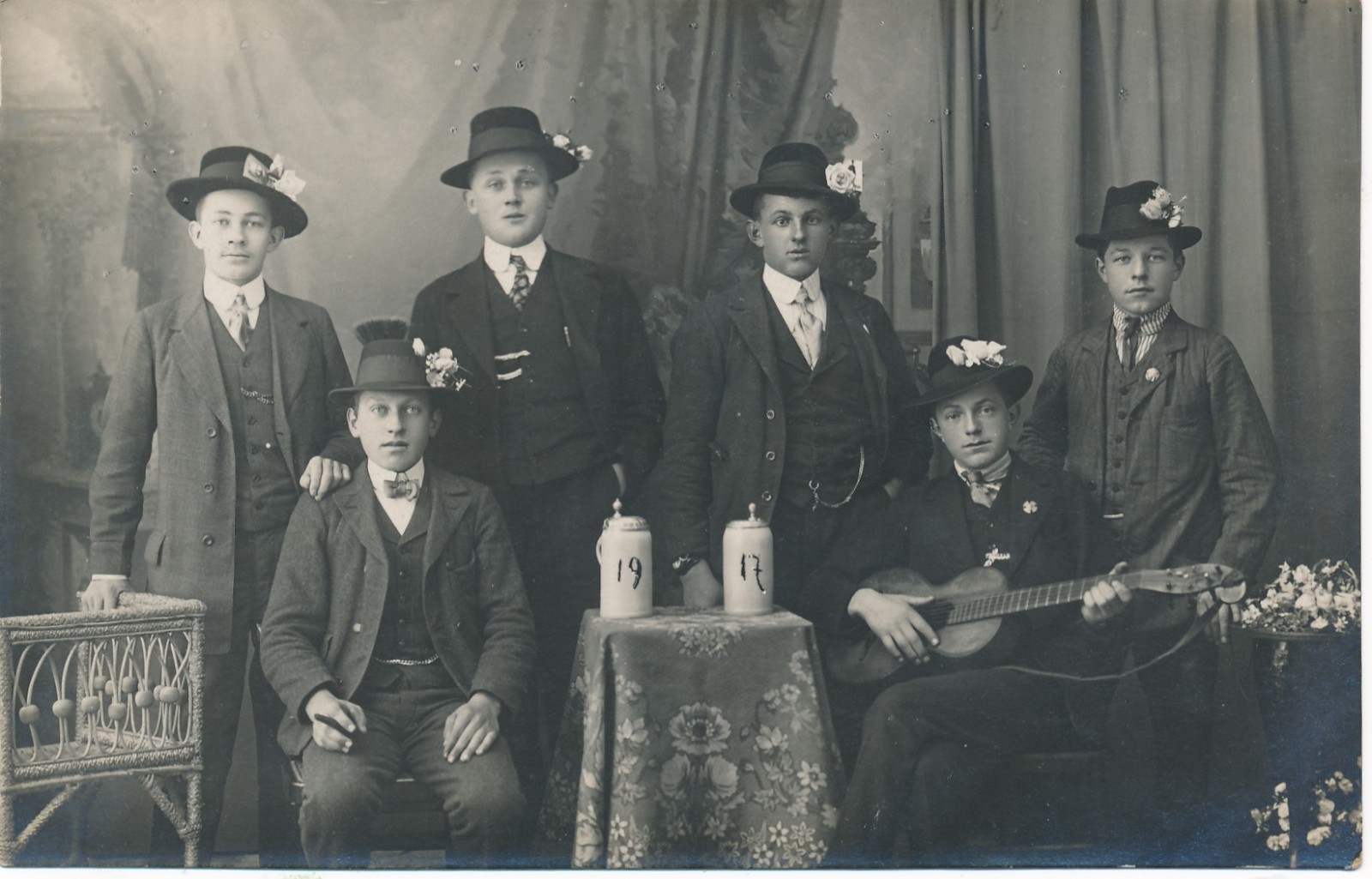 AK Annodazumals sechs Männer und eine Gitarre Ansichtskarte (15425)