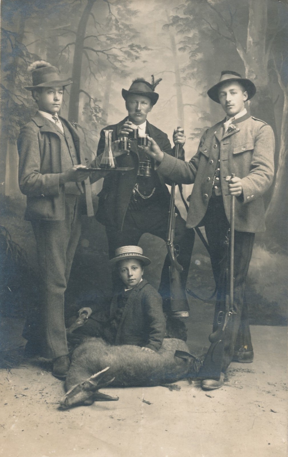 AK Annodazumals von einem Jäger Drio mit Ziegenbock und Flinten (6635)