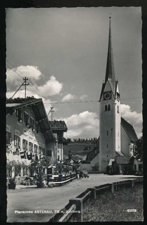 AK aus Abtenau mit Pfarrkirche und Gasthaus zum Roten Ochsen Salzburg (1190)