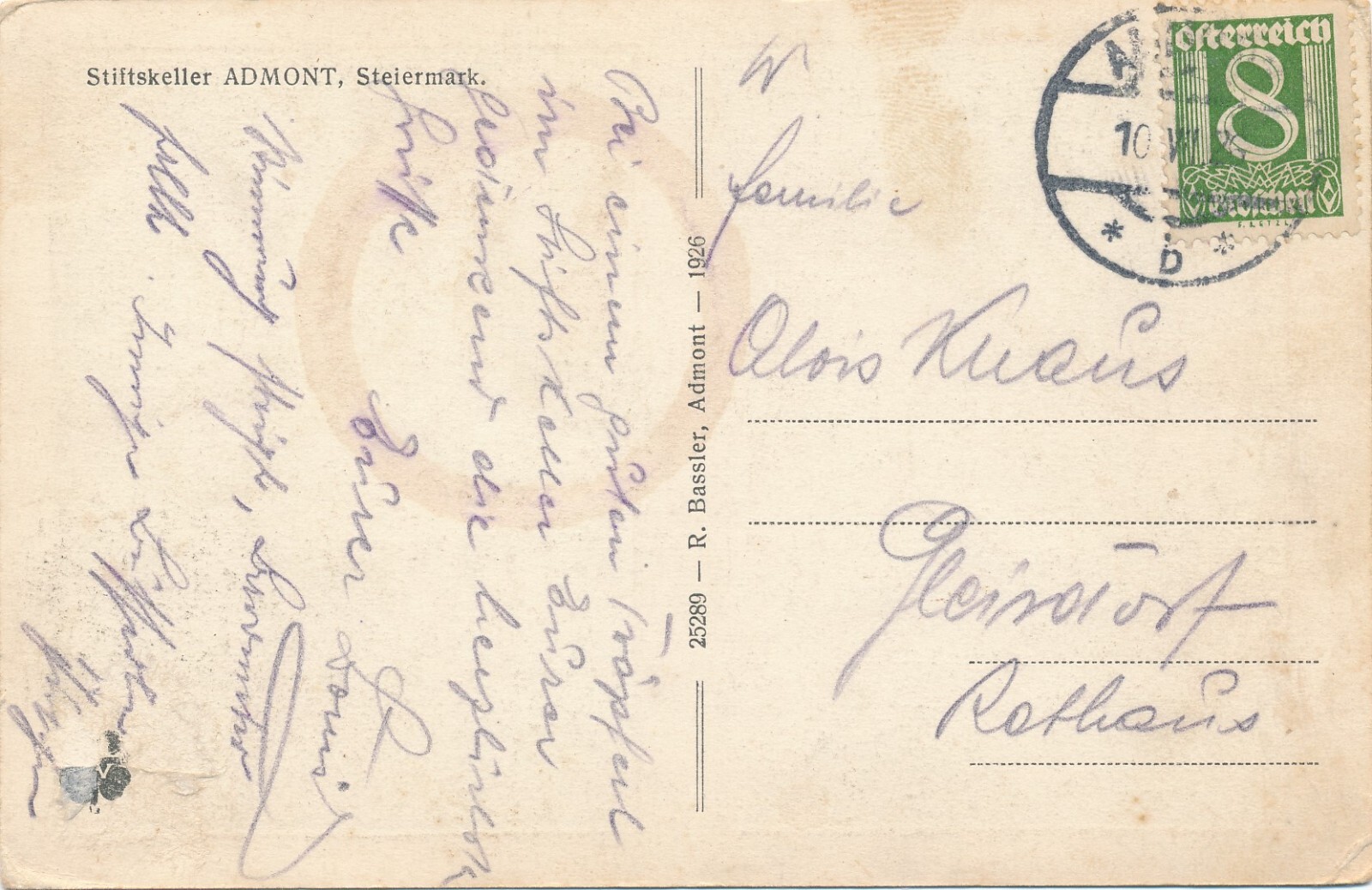 AK aus Admont mit Stiftskeller mit Gastzimmer Steiermark Ansichtskarte (13615)