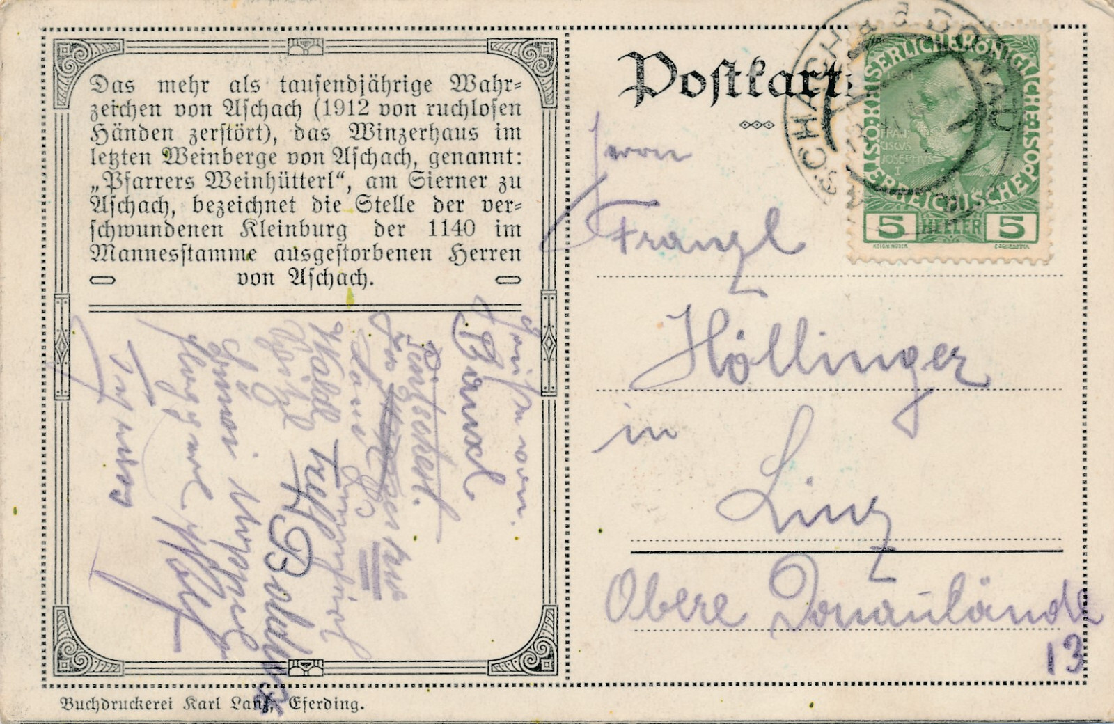AK aus Aschach an der Donau Winzerhaus - Pfarrers Weinhüterl OÖ (6345)
