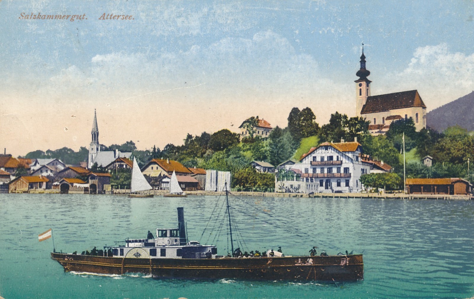AK aus Attersee mit Dampfer Oberösterreich Ansichtskarte (15419)