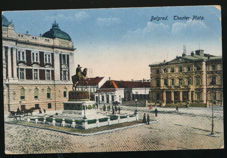 AK aus Belgrad Theater Platz Serbien (3550)