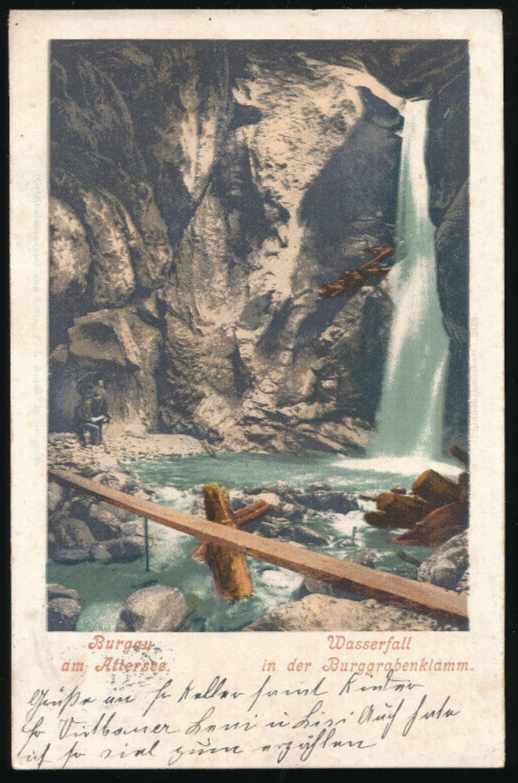 AK aus Burgau am Attersee mit Wasserfall Oberösterreich (L3802)