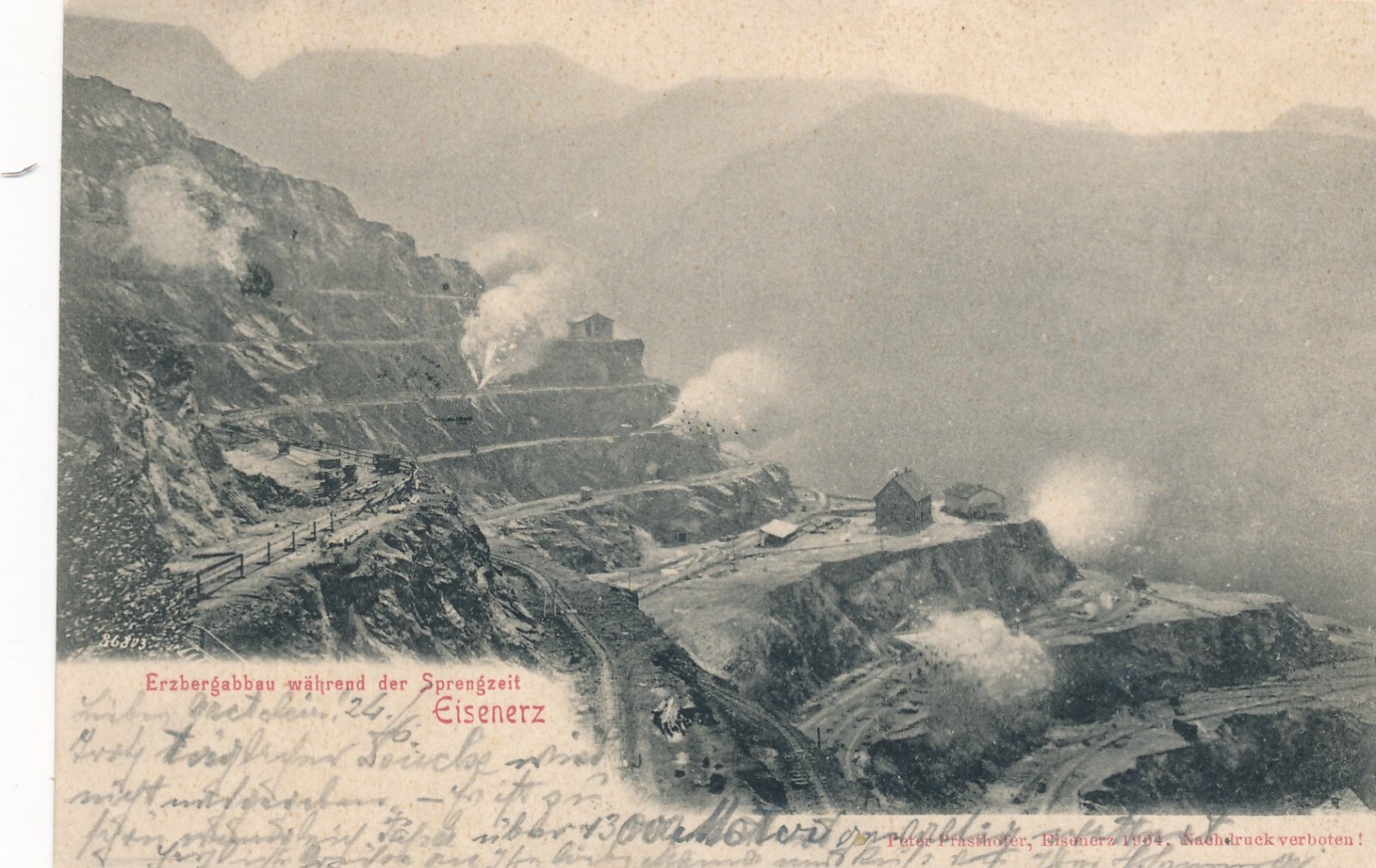 AK aus Eisenerz während Sprengzeit Steiermark Ansichtskarte (12607)