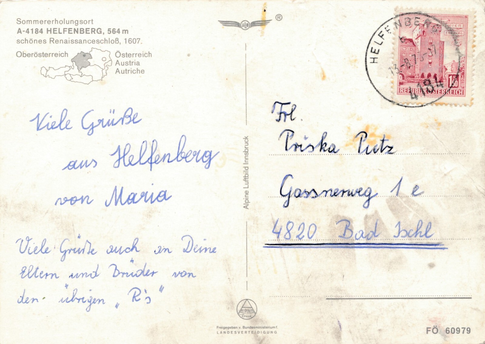 AK aus Helfenberg Oberösterreich Fliegerfoto Ansichtskarte (J385)