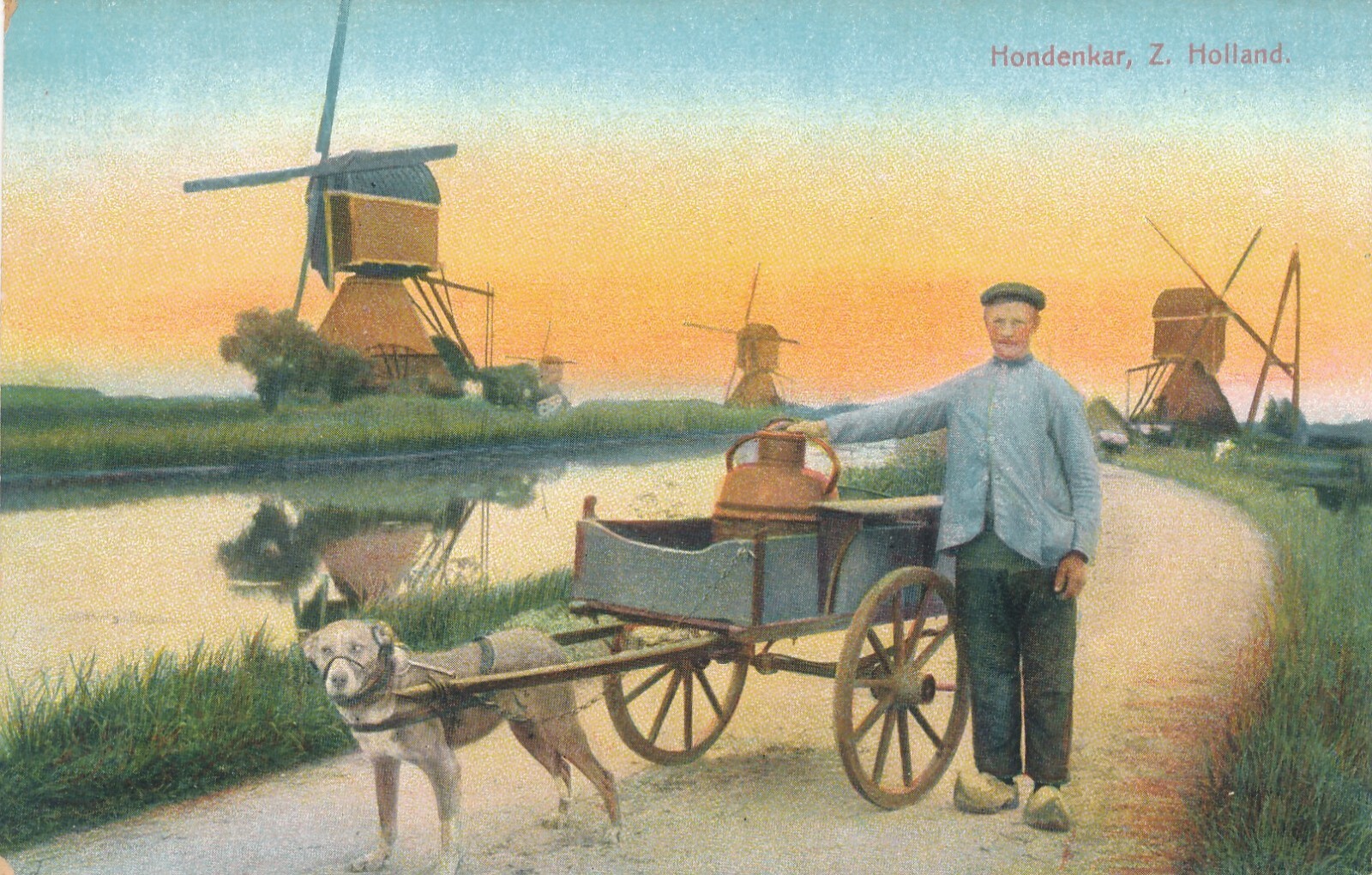 AK aus Holland mit Mühle und Hundekarren - Hundewagen Hondekar (6506)
