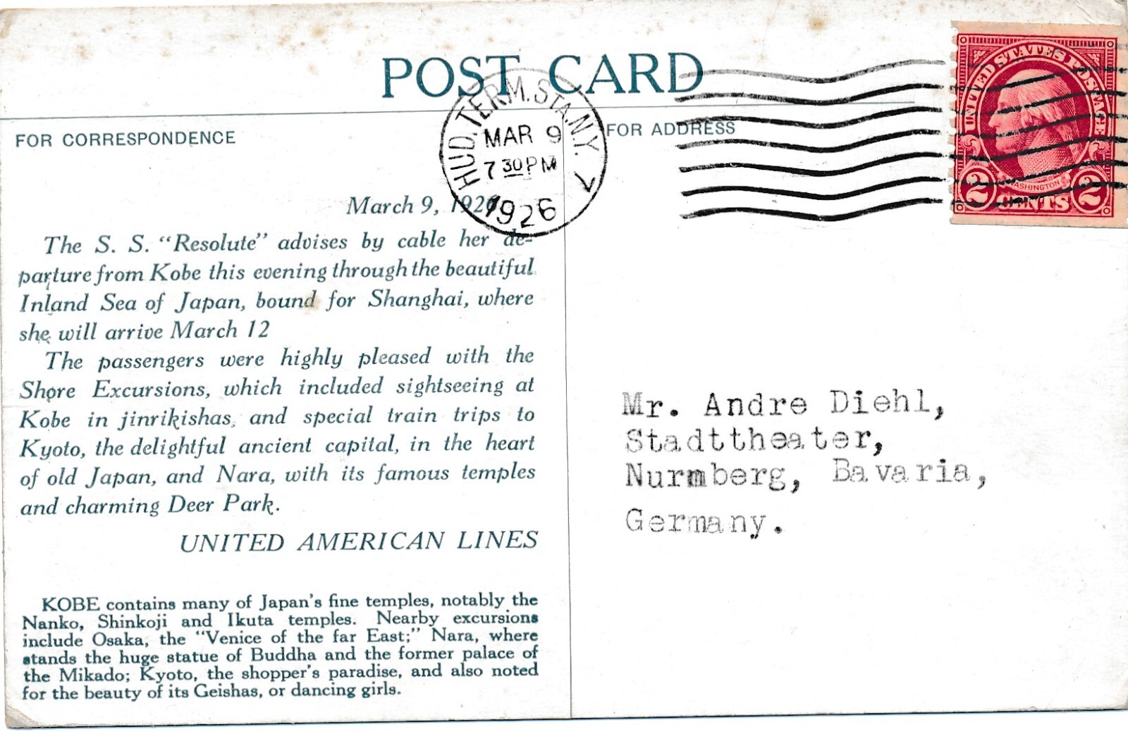 AK aus Kobe mit Habor - Hafen Japan Ansichtskarte (13098)