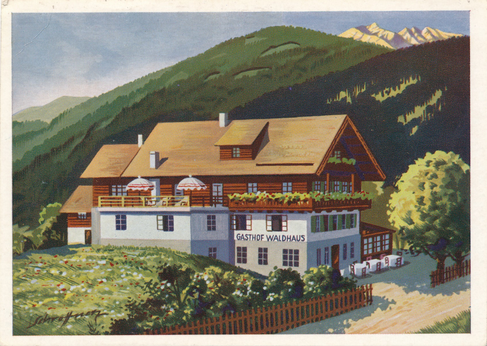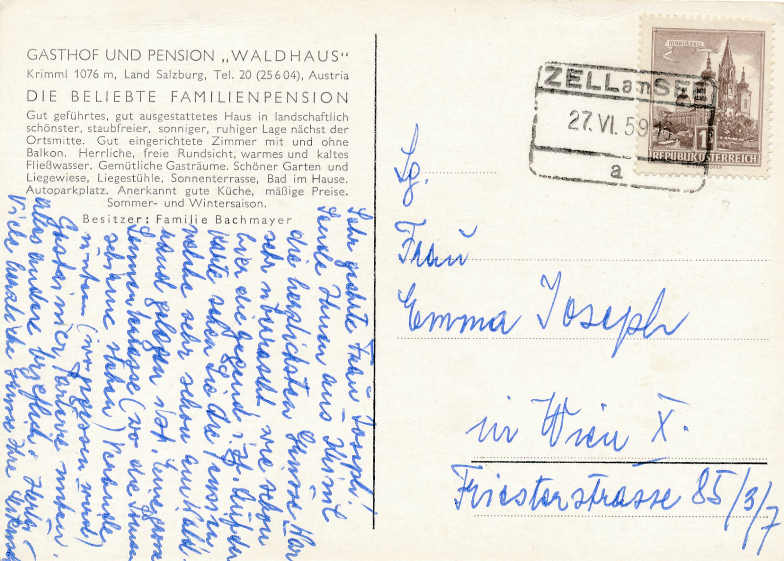 AK aus Krimml mit Gasthof und Pension Waldhaus Salzburg (6209)