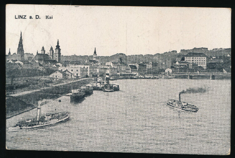 AK aus Linz an der Donau Kai mit Dampfer Oberösterreich (2559)