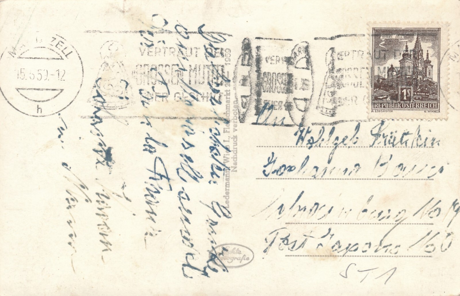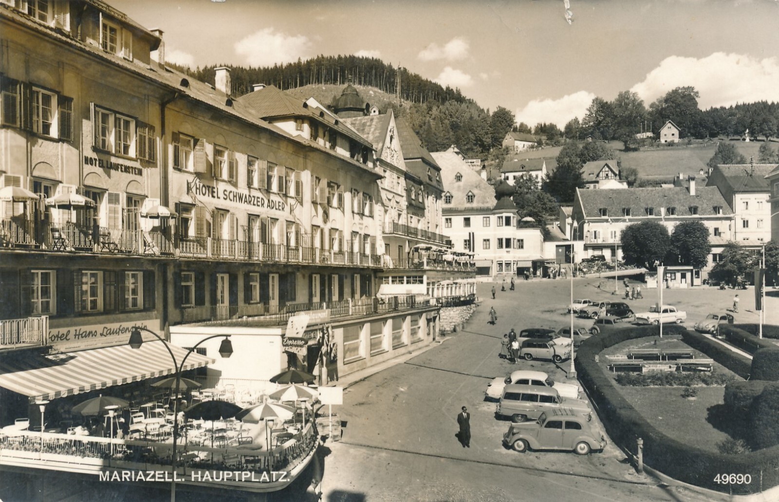 AK aus Mariazell Hauptplatz mit Oldtimer Steiermark Ansichtskarte (12030)