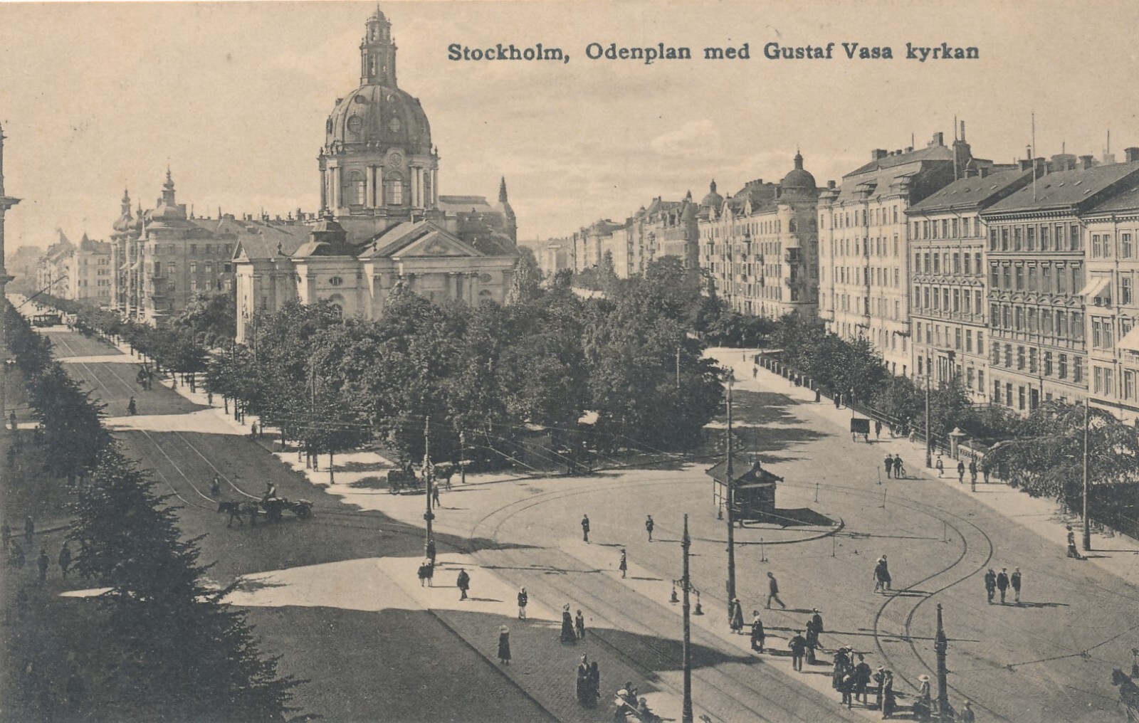 AK aus Stockholm Odenplan med Gustaf Vasa kyrkan Schweden (7369)