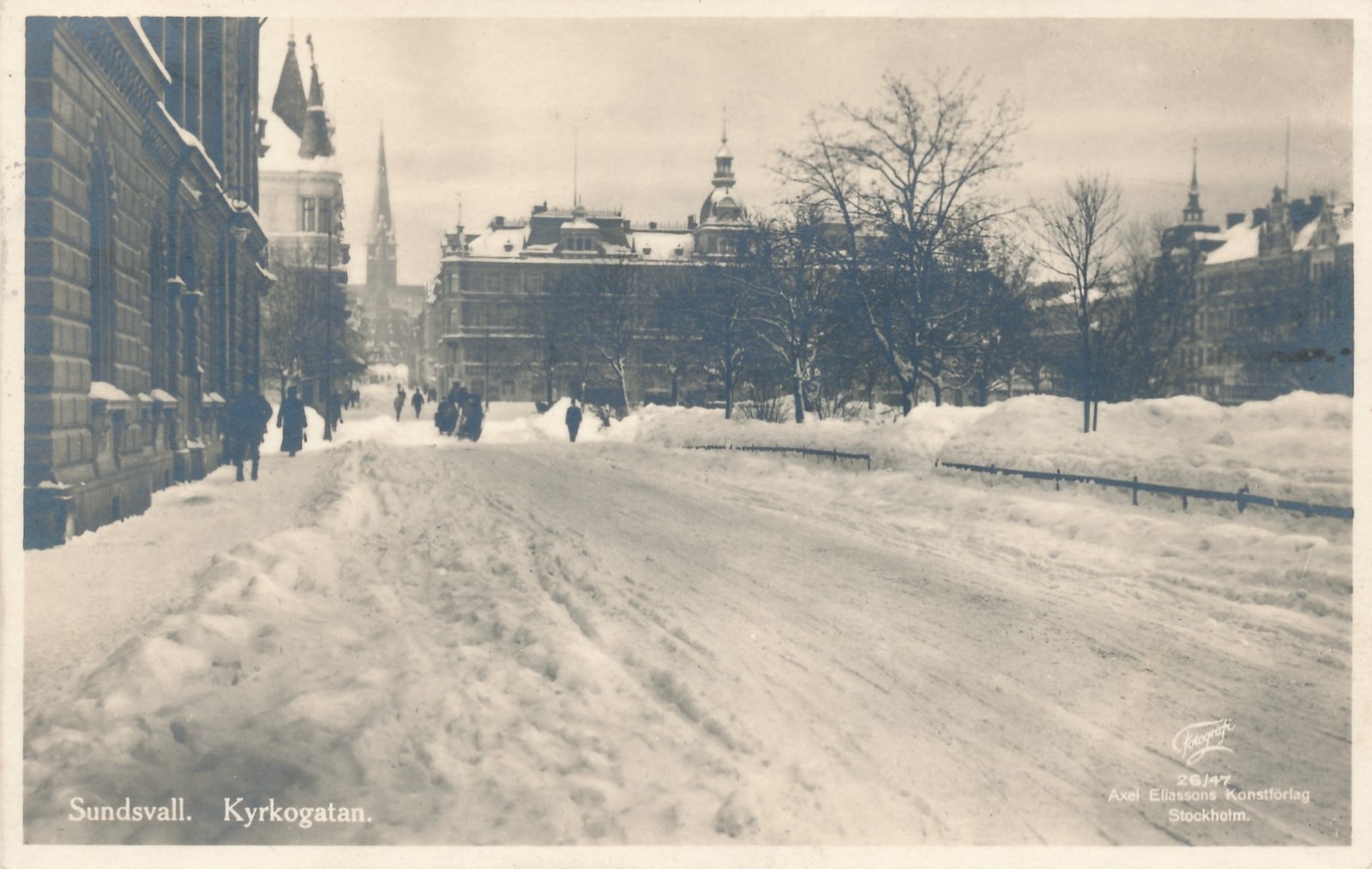 AK aus Sundsvall Kyrkogatan Schweden im Winter Ansichtskarte (15934)
