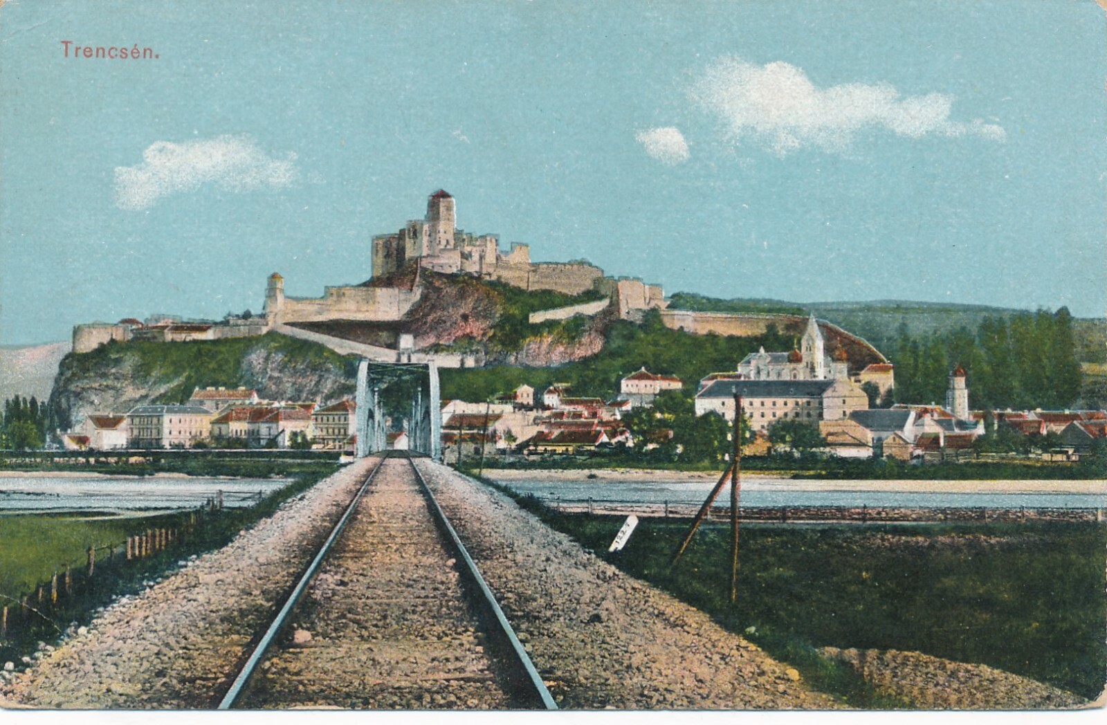 AK aus Trencsen mit Zugschiene Tschechoslowakei Ansichtskarte (13527)