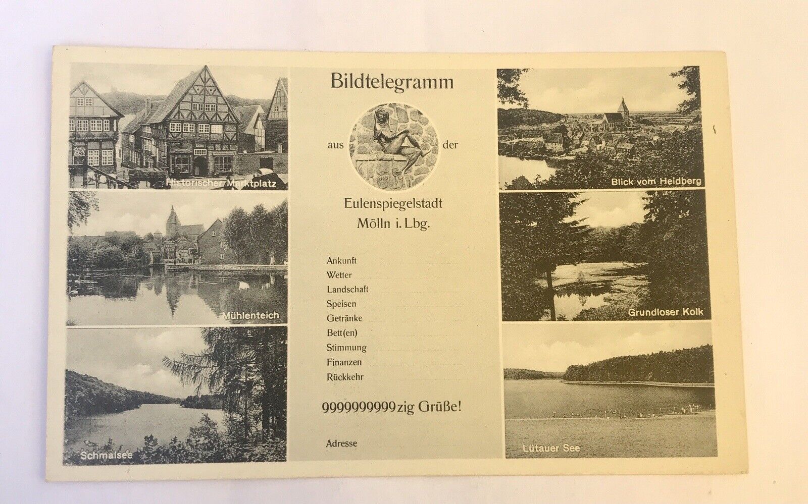 AK, Bildtelegramm, Eulenspiegelstadt, Mölln (110233 BW)