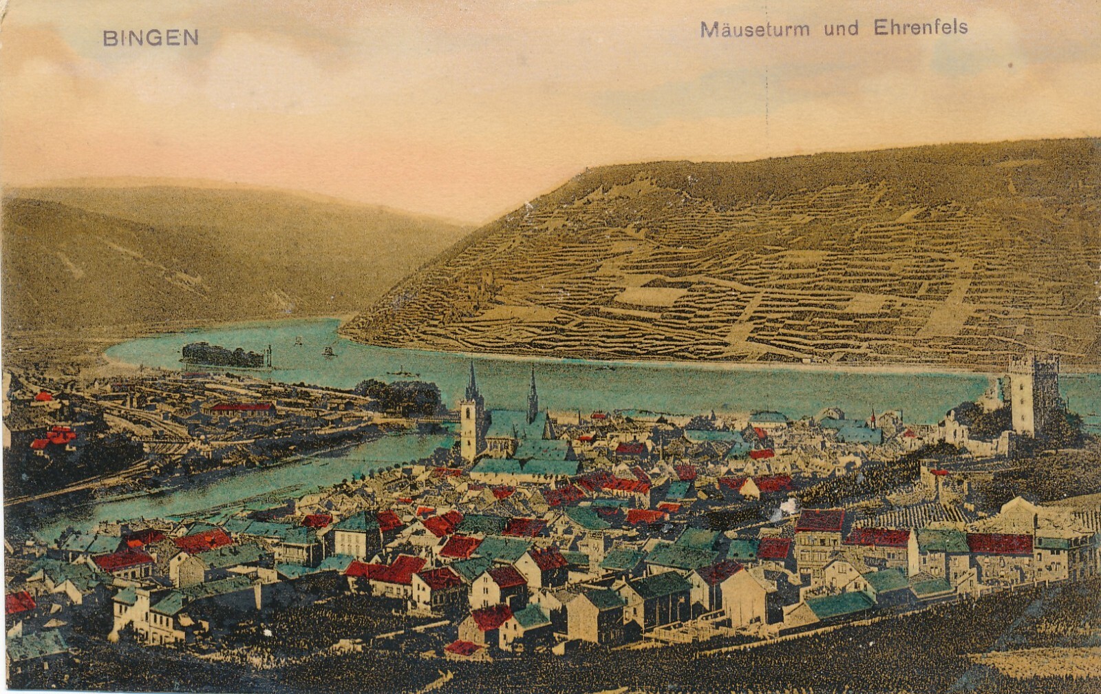 AK, Bingen, Mäuseturm und Ehrenfels, Rheinland-Pfalz (S74)