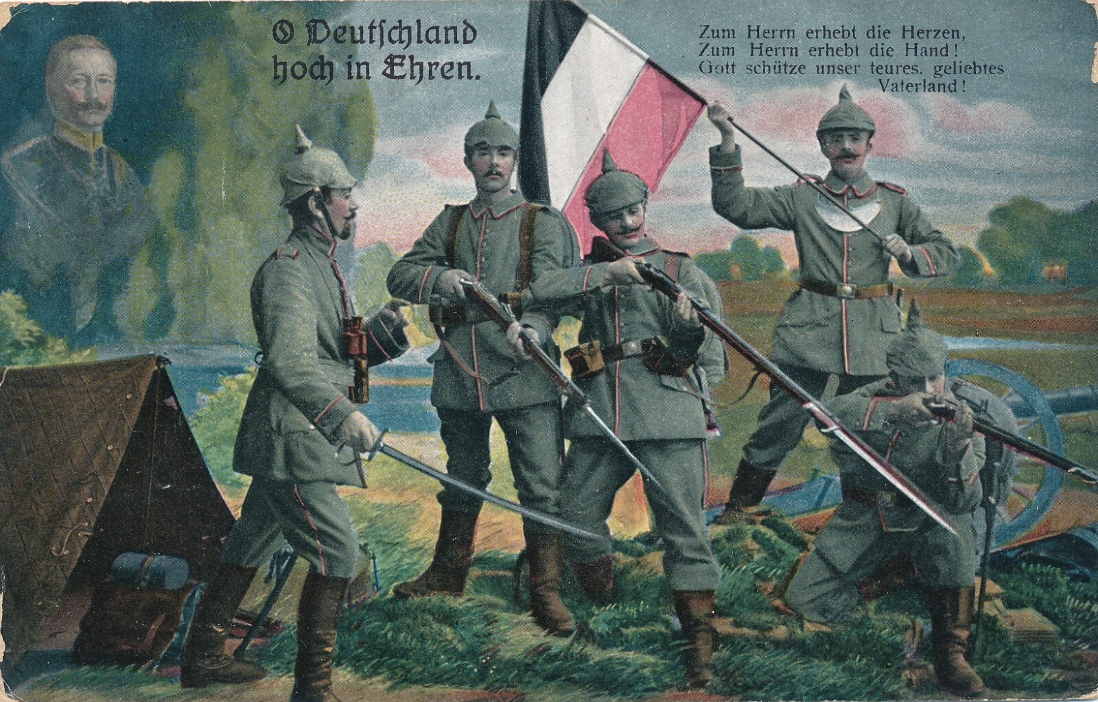 AK Deutschland hoch in Ehren mit Fünf Soldaten mit Waffen Ansichtskarte (14541)