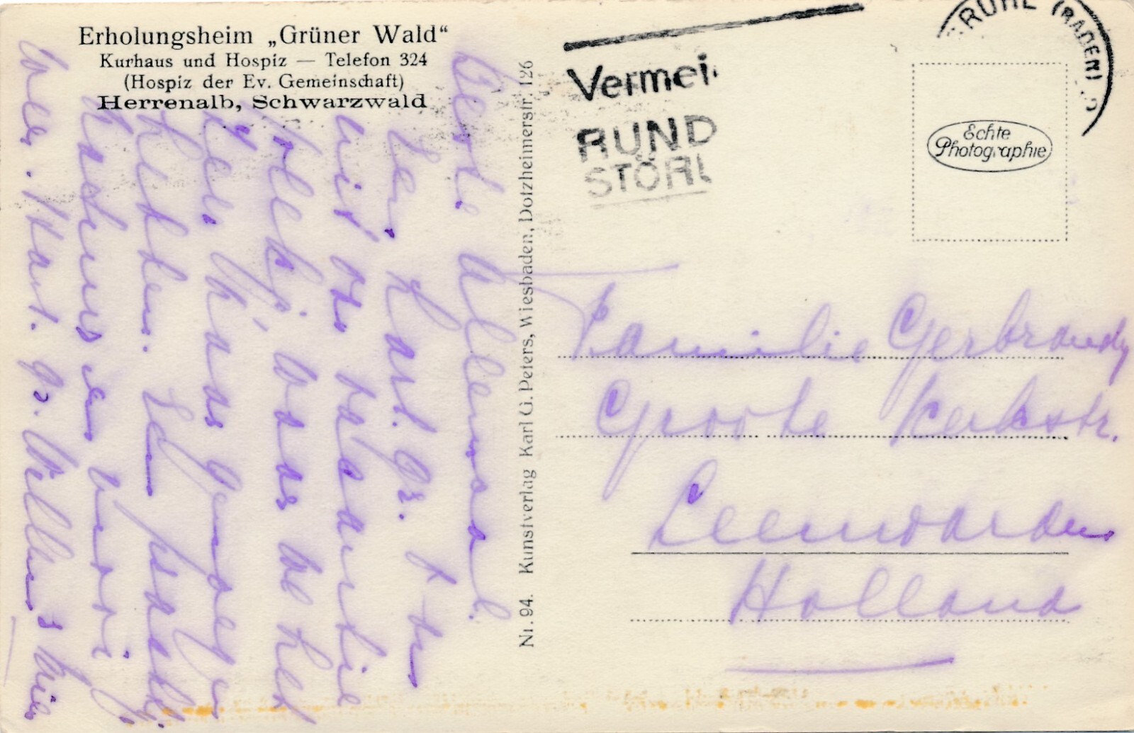 AK, Erholungsheim Grüner Wald, Kurhaus und Hospiz, Herrenalb, Schwarzwald (S541)