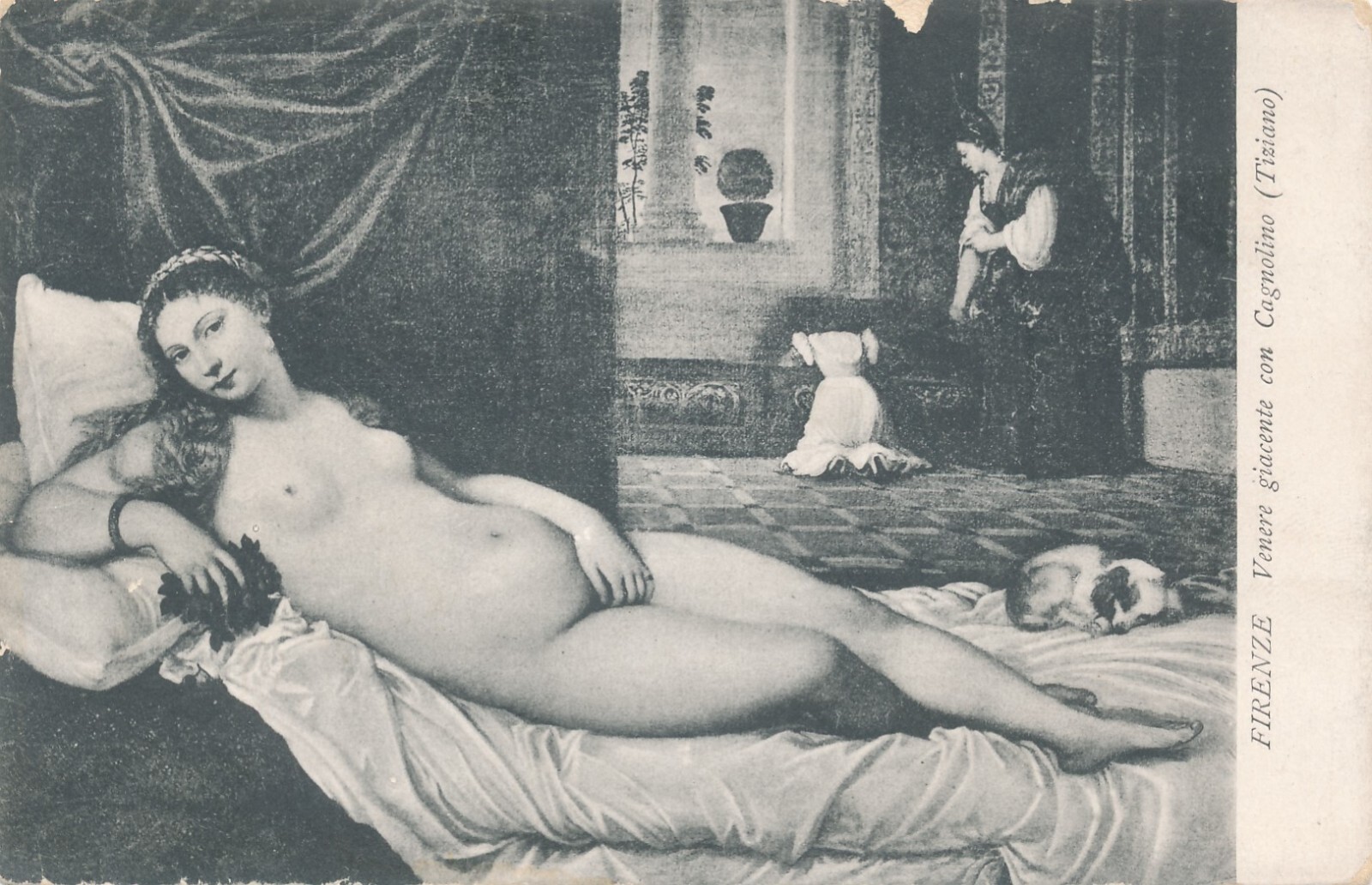 AK Erotik Akt - Nackt Busen Nackte Frau Venere giacente con Cagnolino (6904)