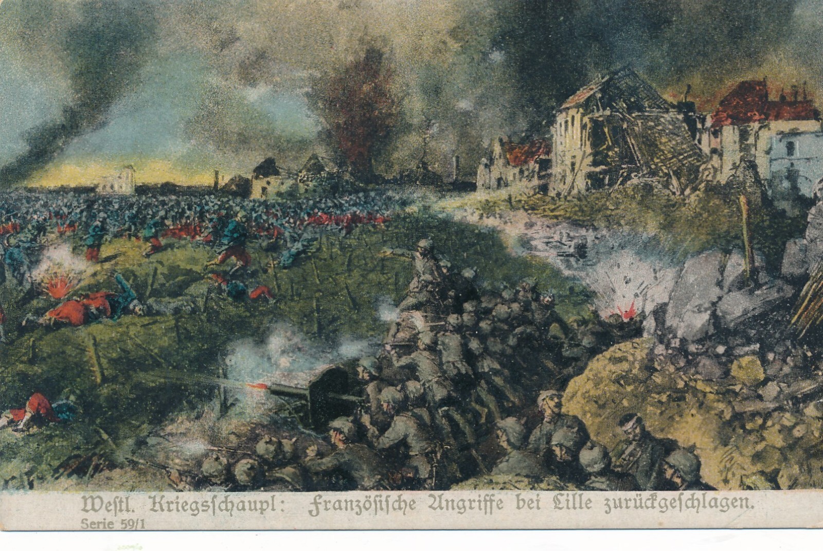 AK Französische Angriffe bei Lille zurückgeschlagen Ansichtskarte (13784)