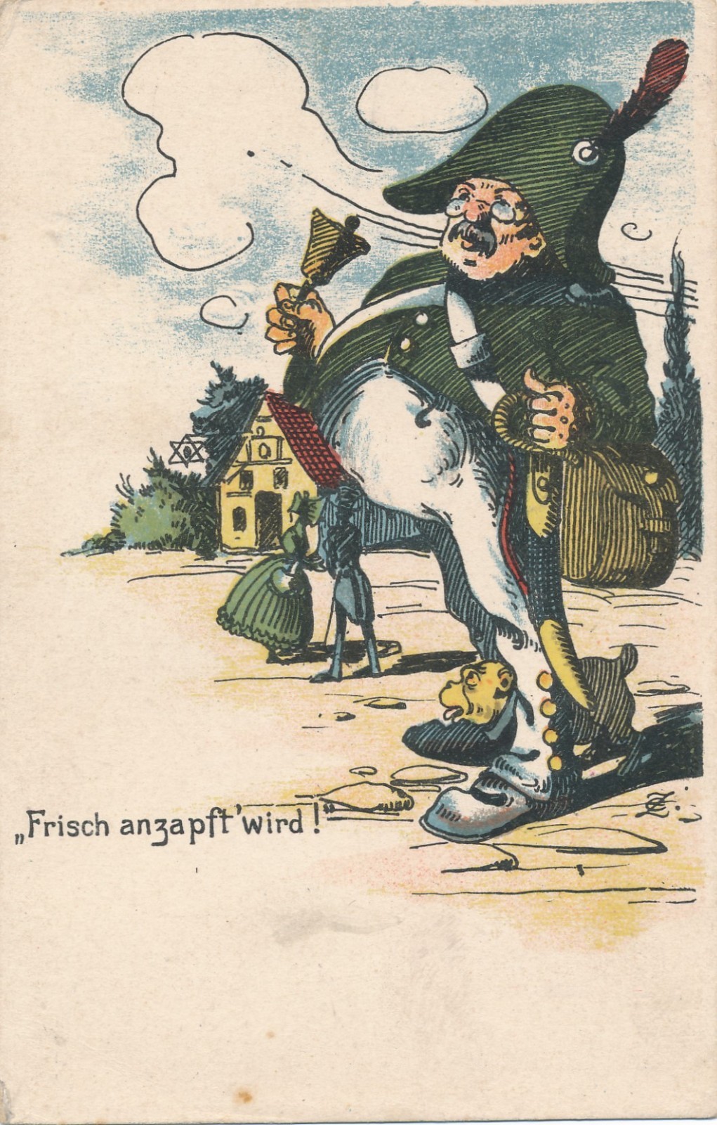 AK Frisch anzapft wird mit Soldat und Säbel Ansichtskarte (16881)
