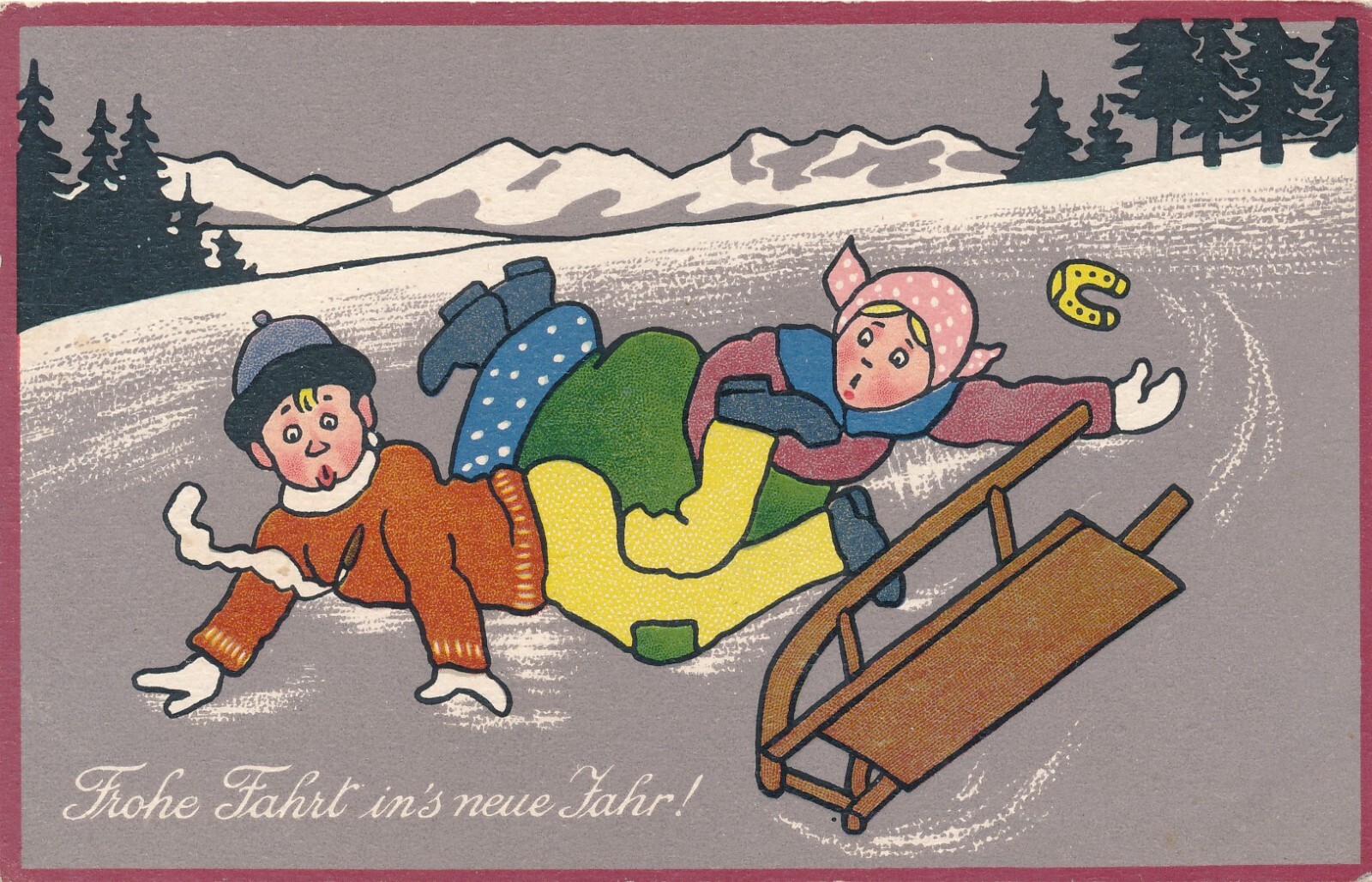 AK Frohe Fahrt ins neue Jahr Mädchen und Junge stürtzen (7202)