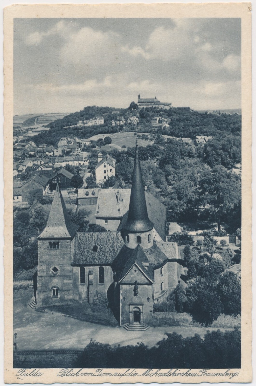 AK, Fulda, Blick vom Dom auf die Michaelskirche u. Frauenberg, Hessen (S1704)