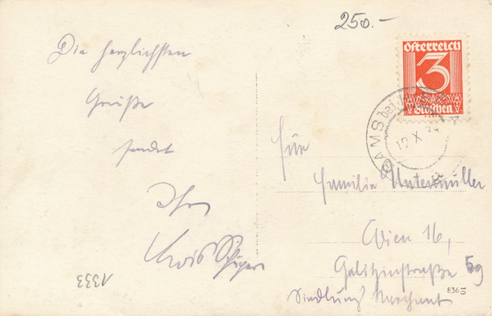 24 Gr. Postanweisung 1936 aus Wien nach Bad Kreuzen + Trachten Marken (10405)