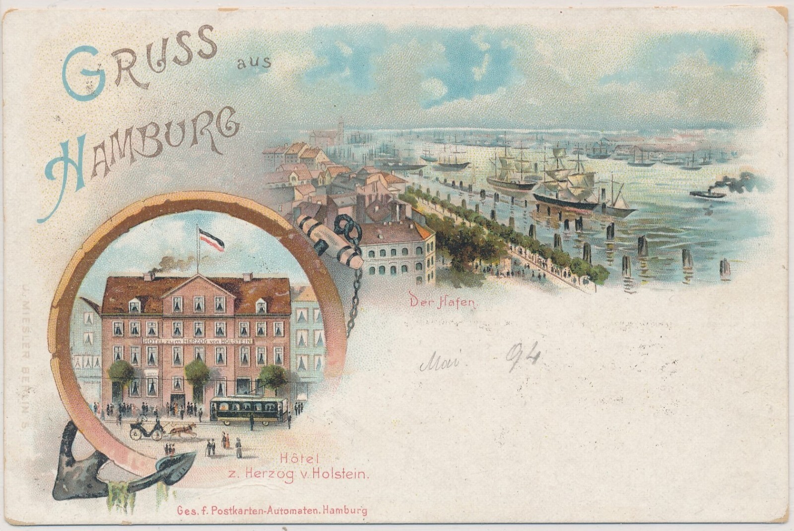 AK, Gruß aus Hamburg, Der Hafen, Hotel z. Herzog v. Holstein (S722)