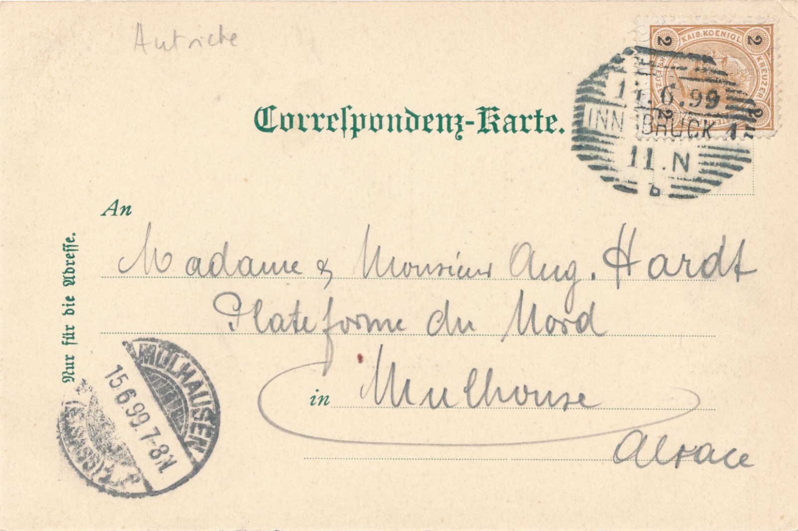 2 Kreuzer - Ganzsachen - Karte 1893 aus Bielitz (10675)