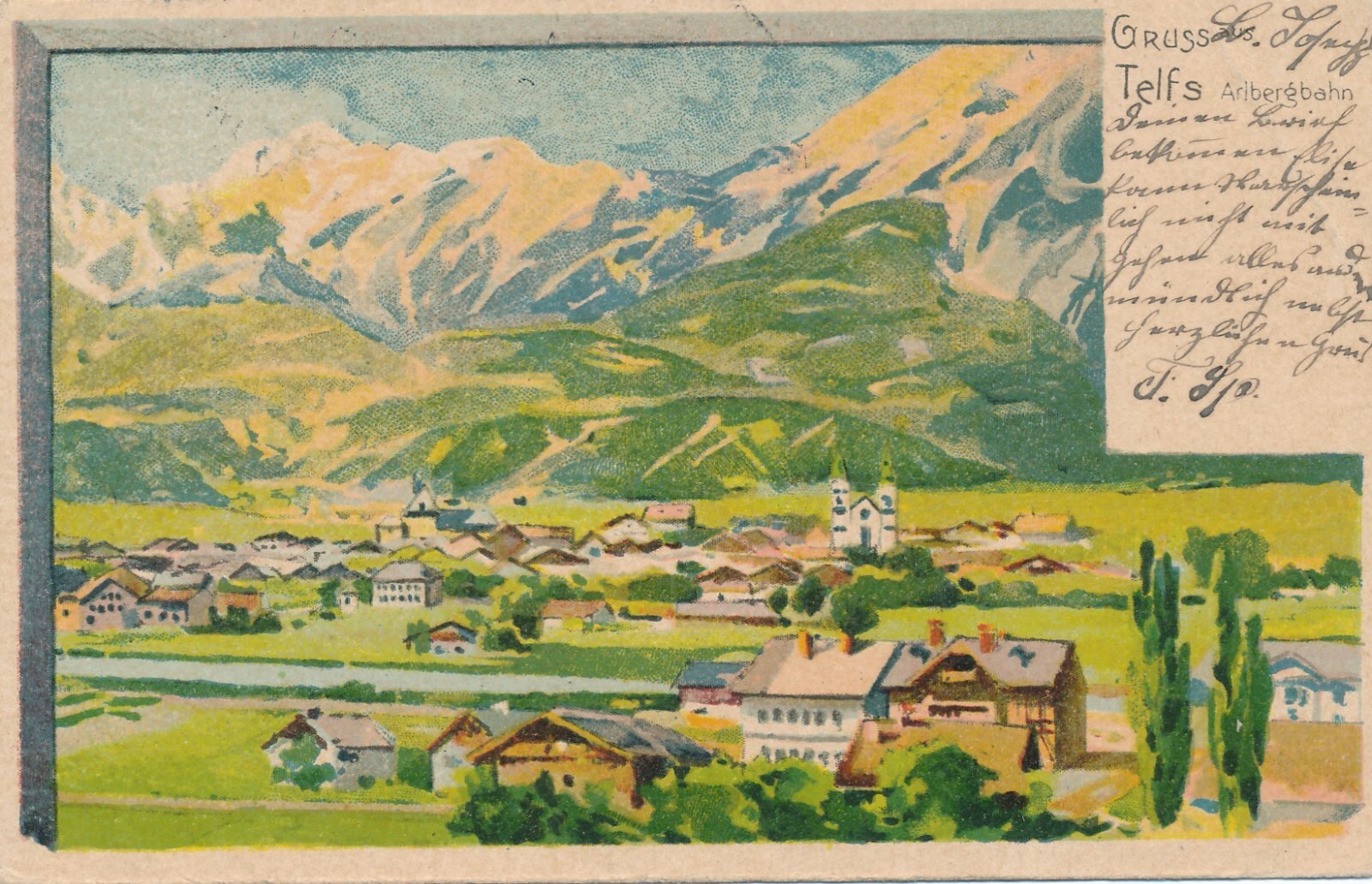 AK, Gruß aus Telfs, Arlbergbahn, Tirol (S687)