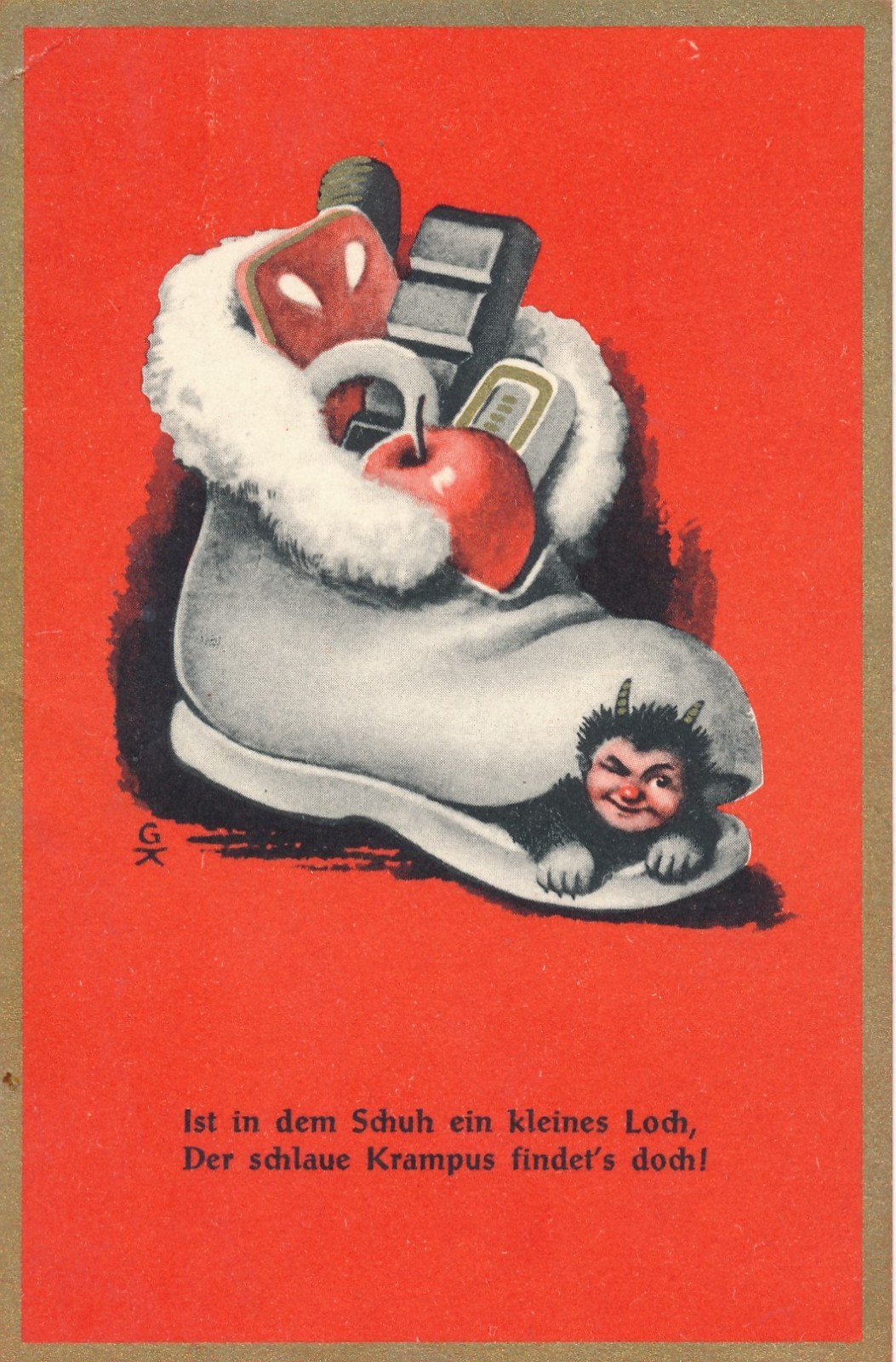 AK Gruss vom Krampus ist in dem Schuh ein kleines loch Ansichtskarte (18000)