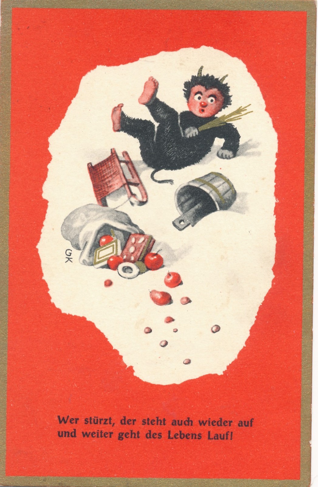 AK Gruss vom Krampus wer stürtzt der steht auch wieder auf Ansichtskarte (17993)