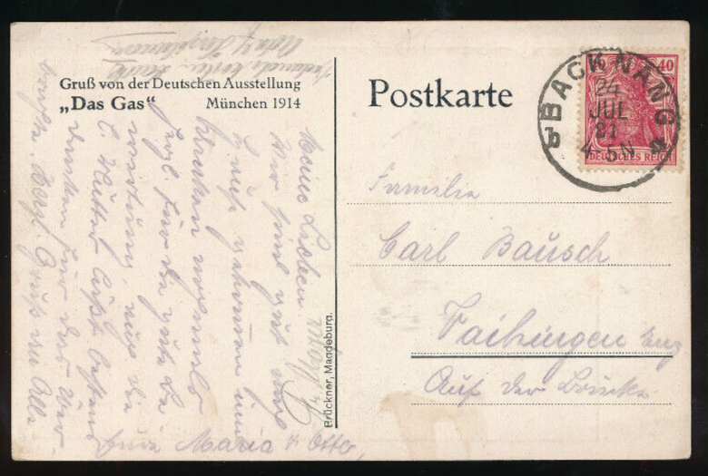AK gruss von der Deutschen Ausstellung Das Gas (1918)