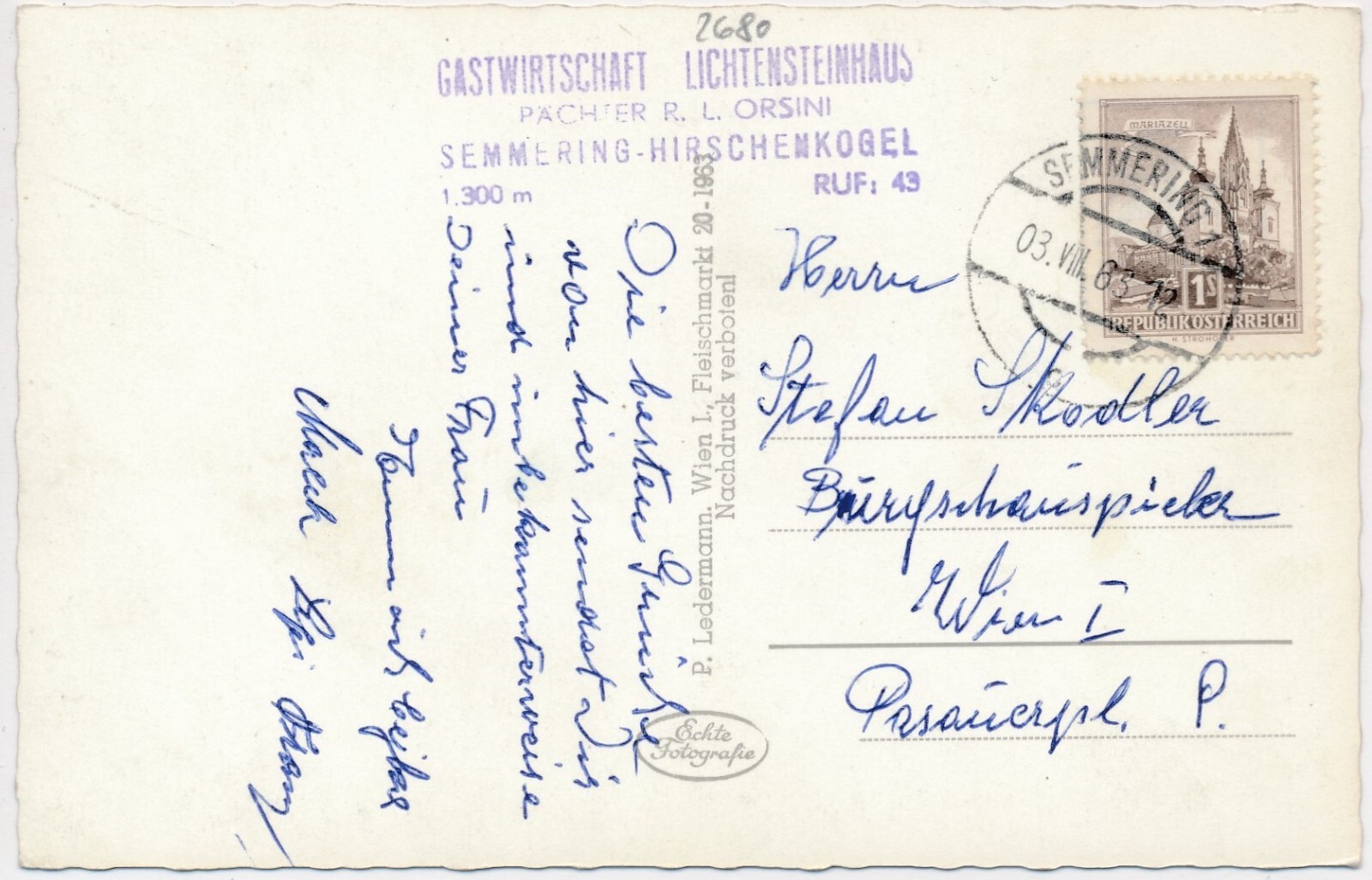 AK, Hirschenkogel, Liechtensteinhaus u. Sessellift, Niederösterreich (S414)