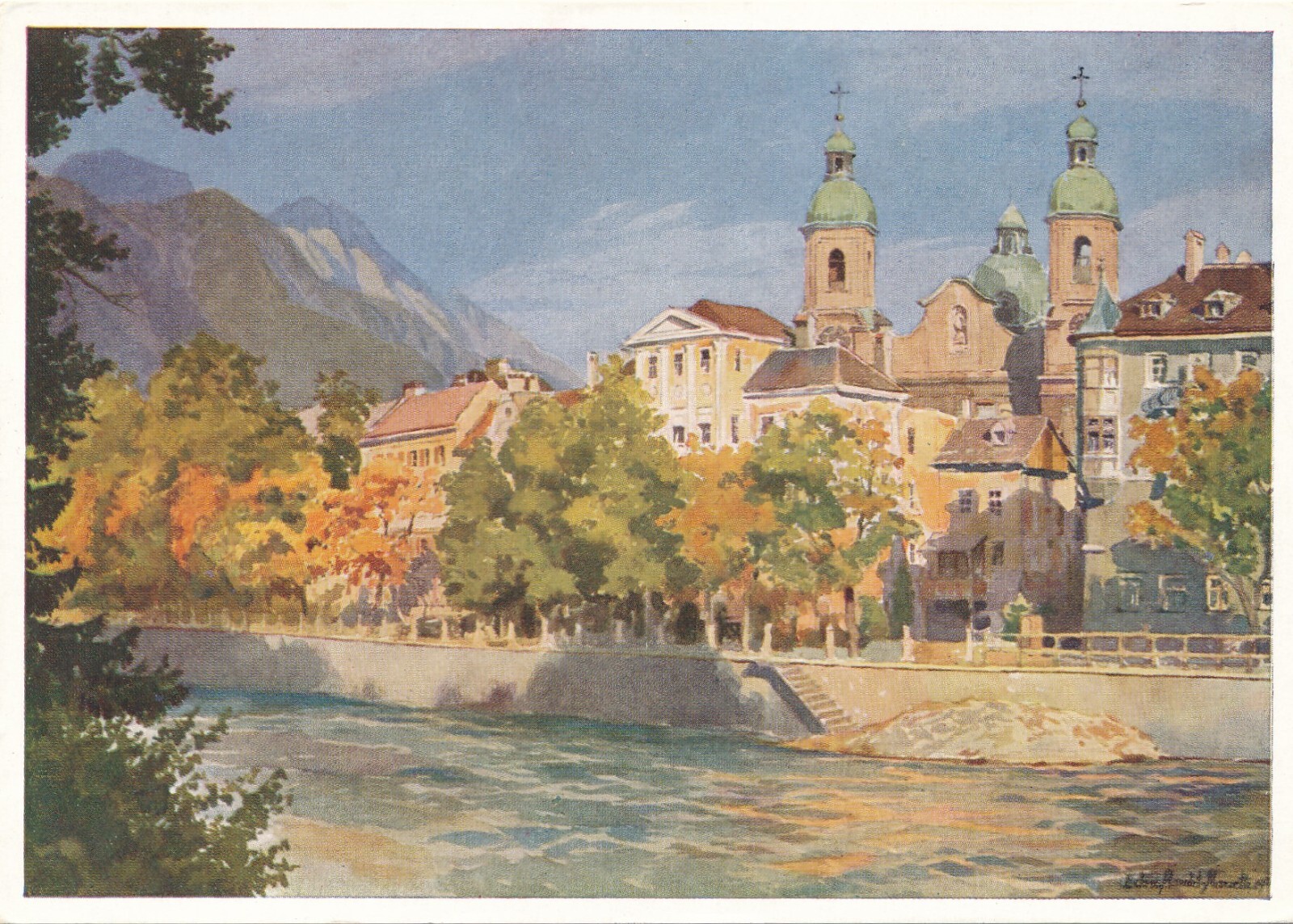 AK, Innsbruck, Partie am Inn mit Pfarrkirche, Tirol (S1556)