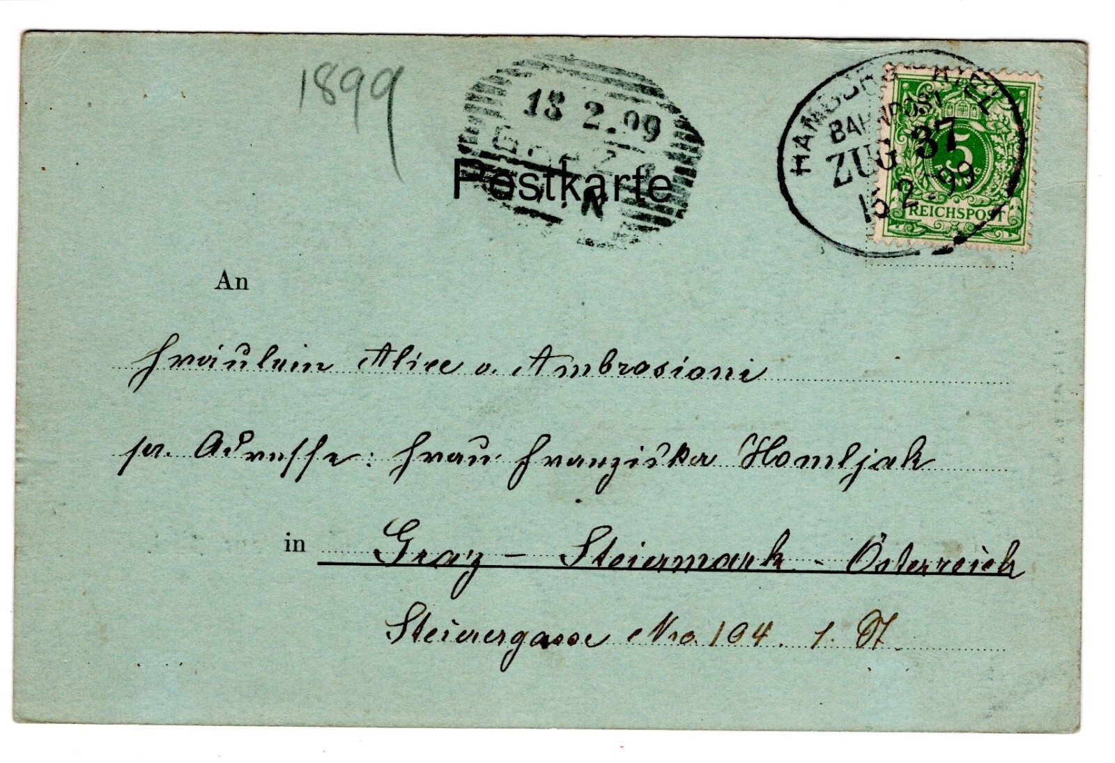 2 Kreuzer Ganzsachen - Karte 1887 aus Kratzau (10528)