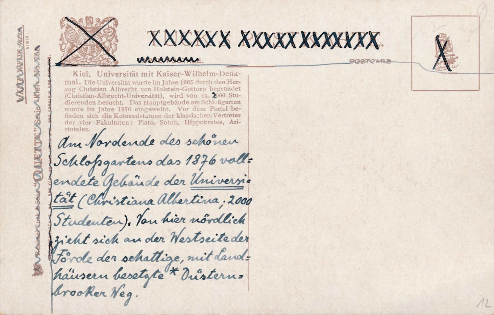 AK, Kiel, Universität u. Kaiser Wilhelm Denkmal, Schleswig-Holstein (S1861)