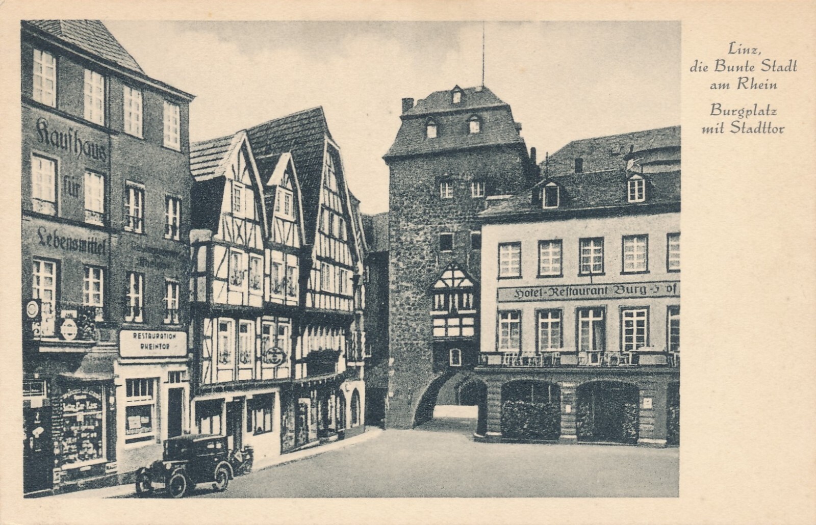 AK, Linz die Bunte Stadt am Rhein, Burgplatz mit Stadttor (S922)