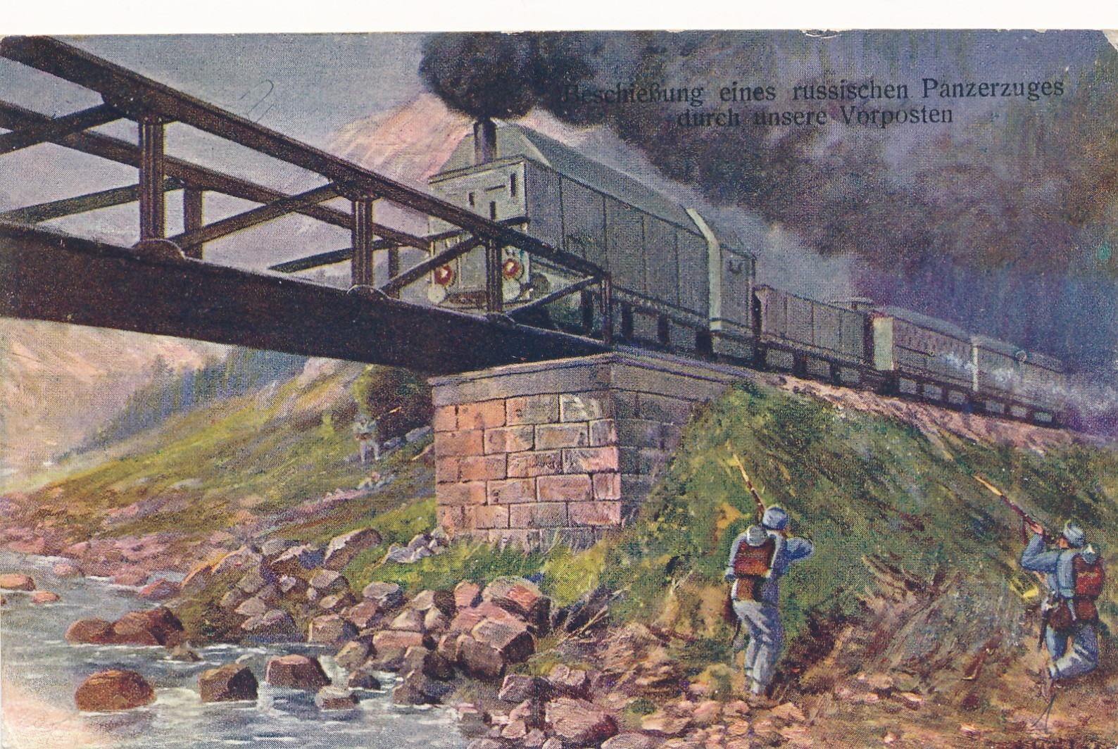 AK Militaria Beschießung eines Russischen Panzerzugs Ansichtskarte (16491)