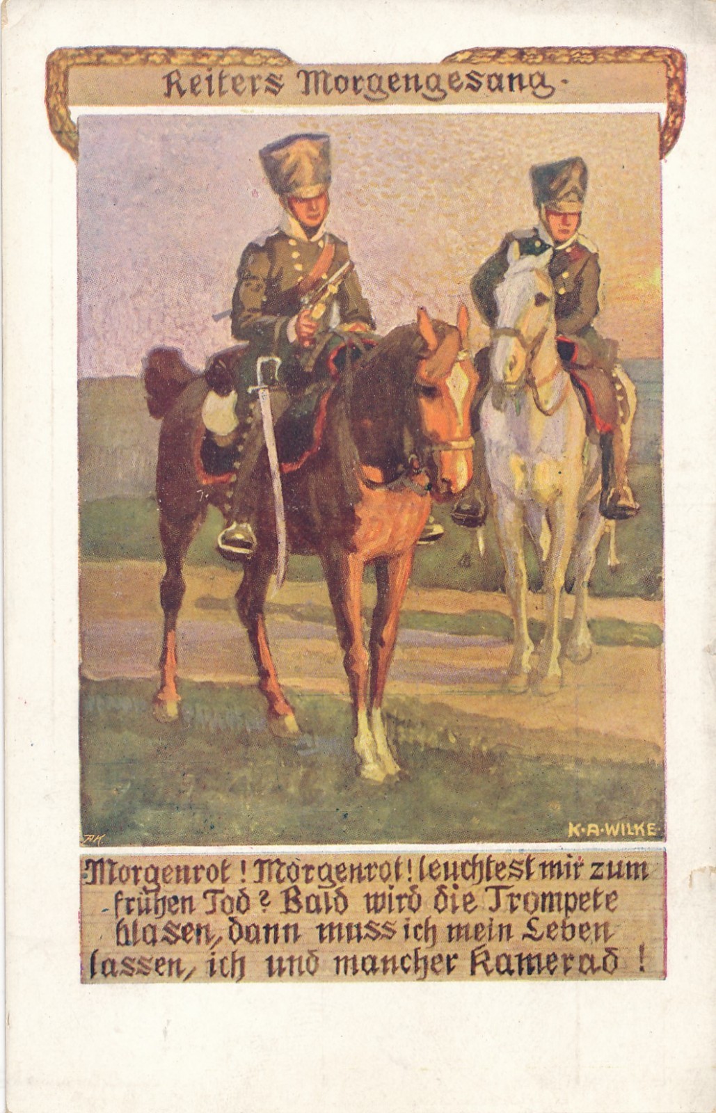 AK Militaria Reiters Morgengnag Ansichtskarte (17361)