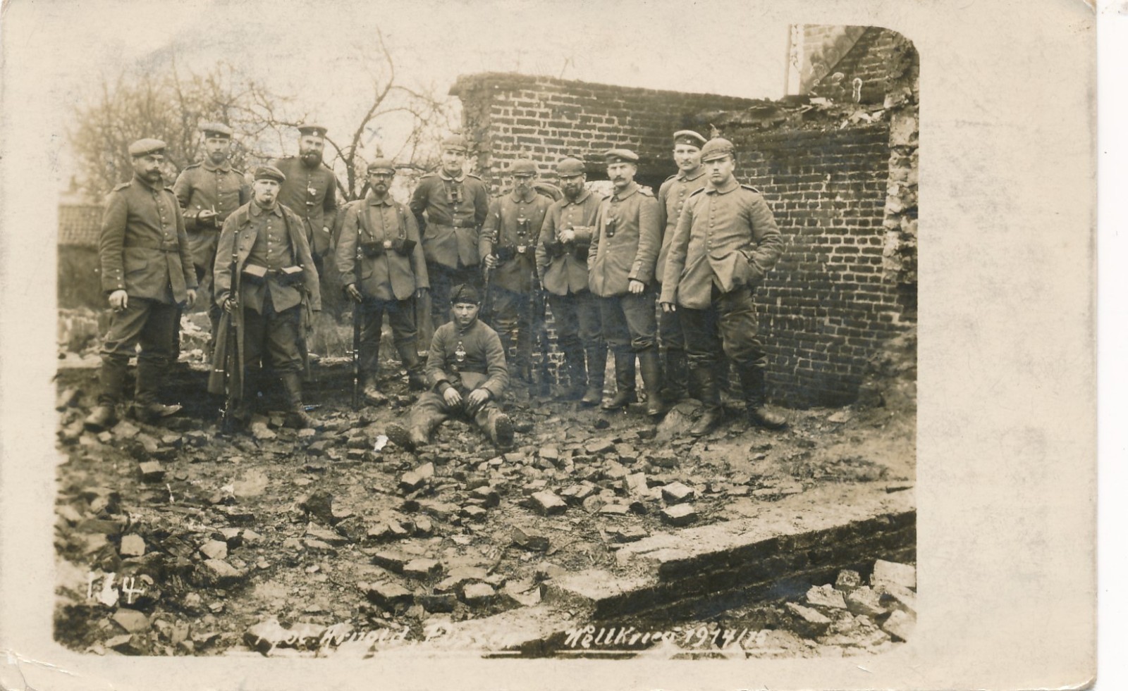 AK Militaria Soldaten in den Trümmern Weltkrieg 1914 / 15 Ansichtskarte (16875)