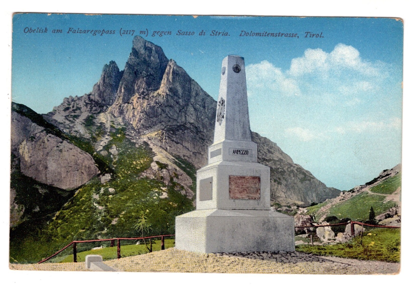 AK, Obelisk am Falzaregopass gegen Sasso, Italien, Ansichtskarte (S7299)