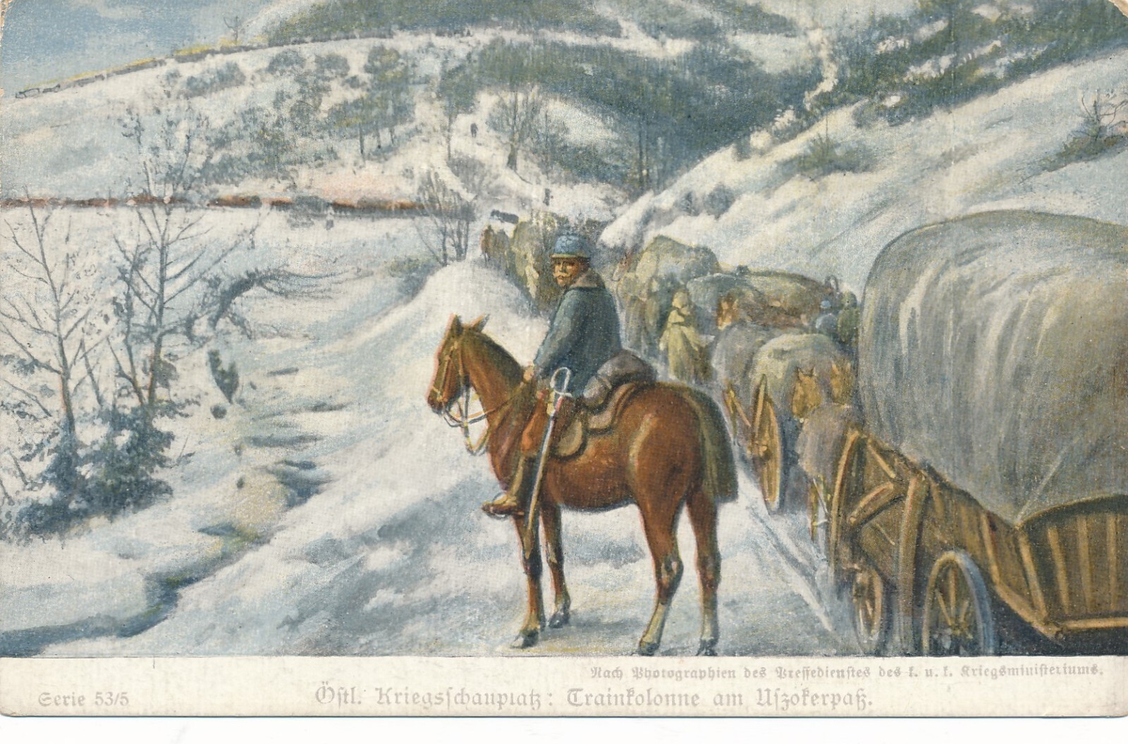 AK Östl. Kriegsschauplatz Trainkolonne am Aszoferplass Ansichtskarte (13636)