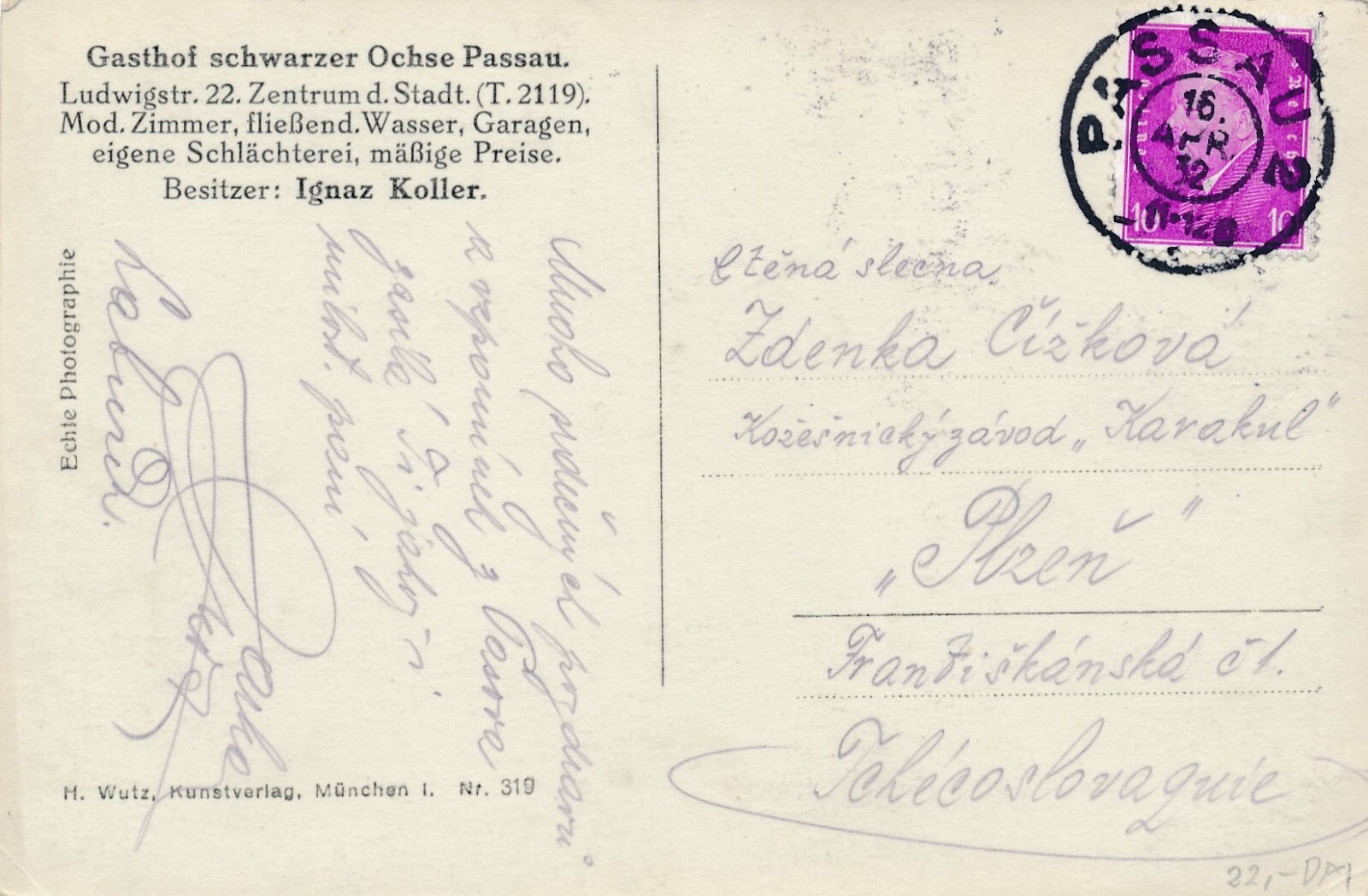 AK, Passau, Nachtstimmung, Gasthof schwarzer Ochse, Bayern (S1727)