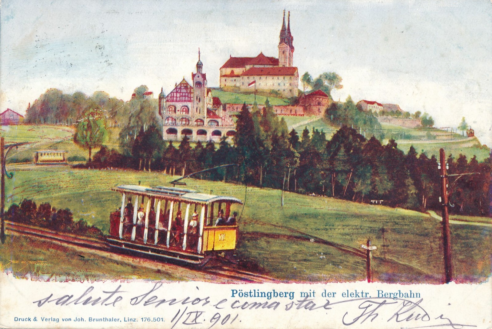 AK, Pöstlingberg mit der elektr. Bergbahn, Linz, Oberösterreich (S121)