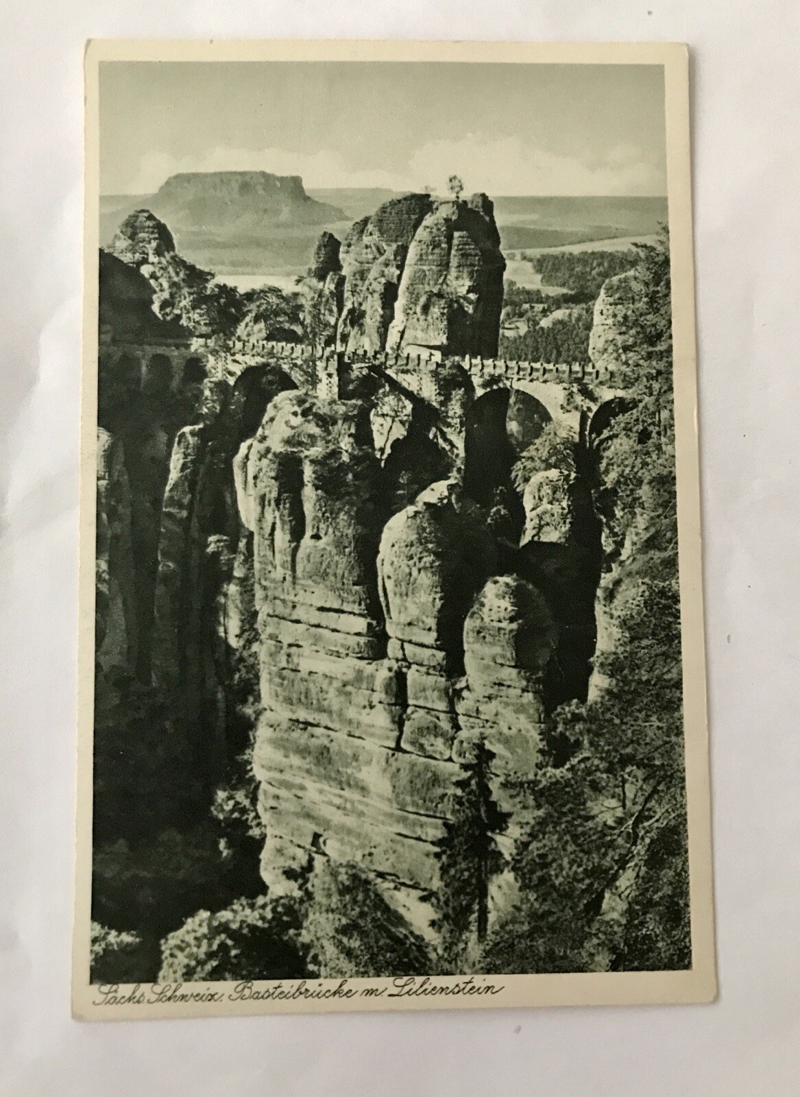 AK, Sächsische Schweiz, Basteibrücke, Lilienstein (110205 BW). Zustand: "Gebraucht". Versand mit Standardversand (unversichert).