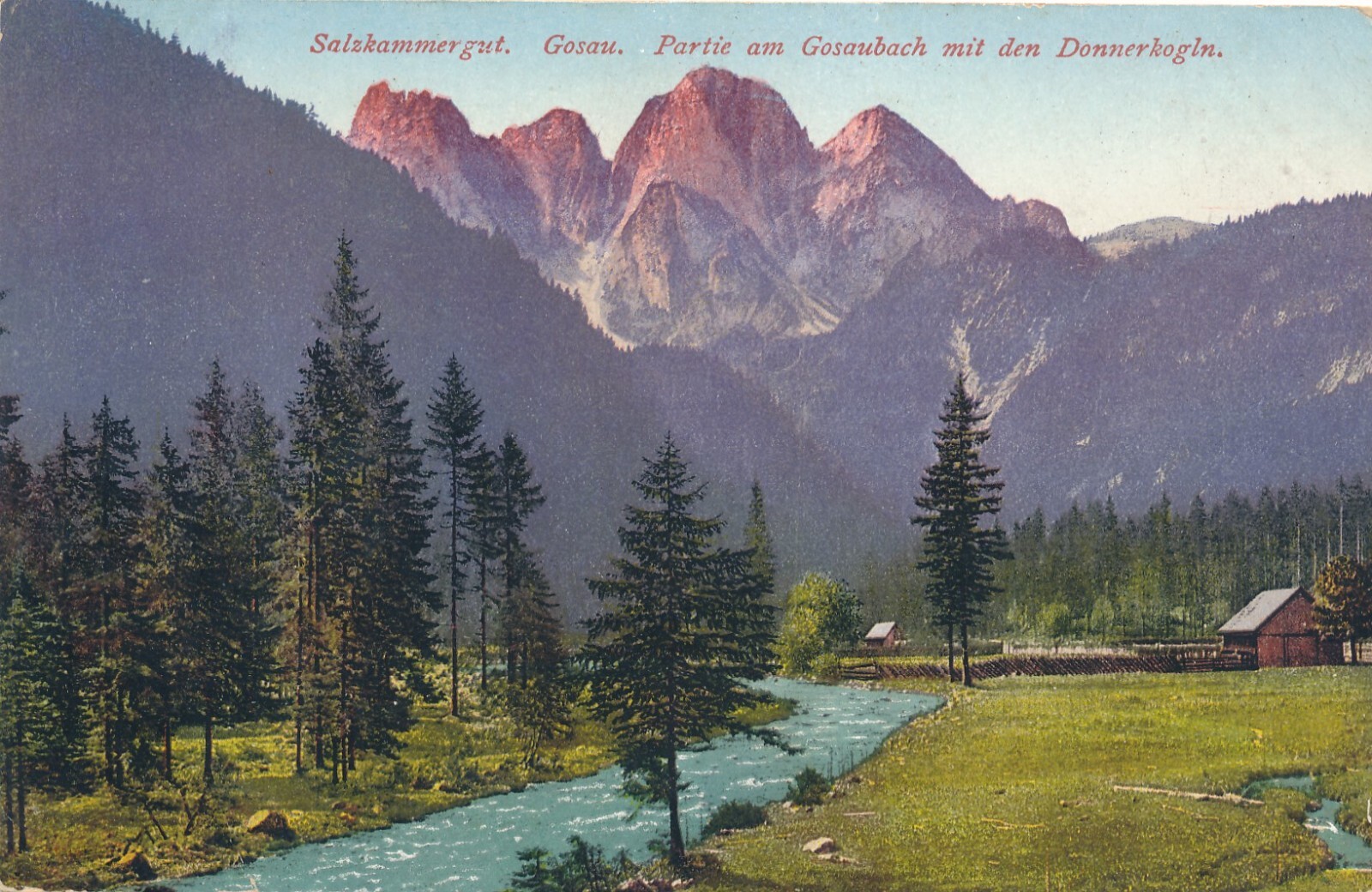 AK, Salzkammergut, Gosau, Partie am Gosaubach mit den Donnerkogln (S1225)