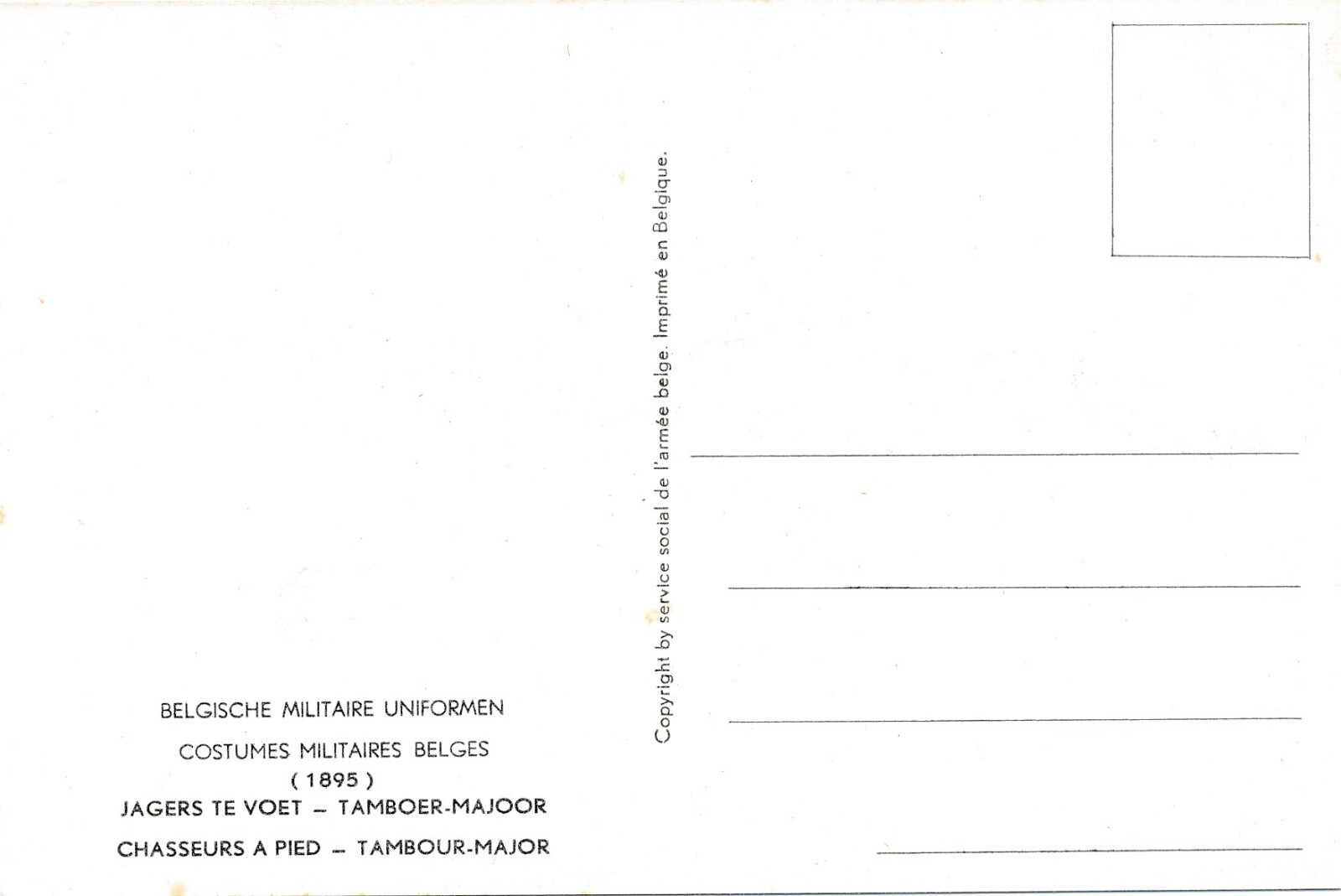 AK Uniform Belgien 1895 Jagers te Voet Tamboer Majoor Ansichtskarte (8743)