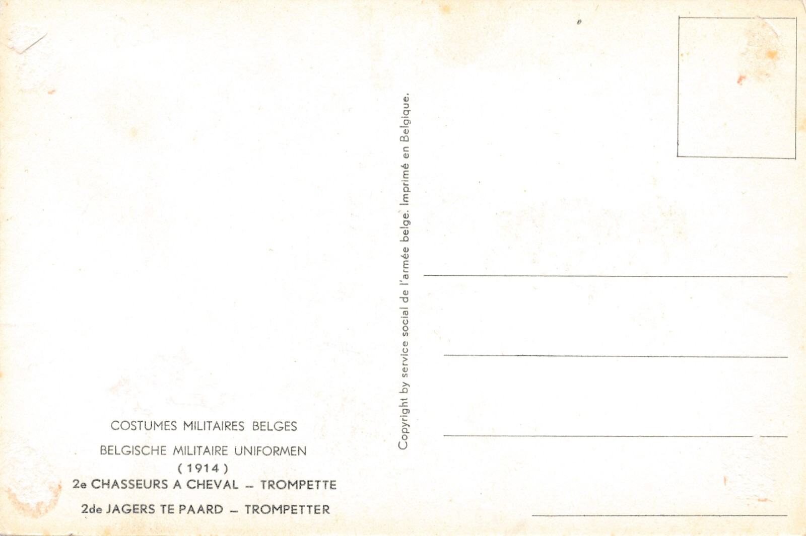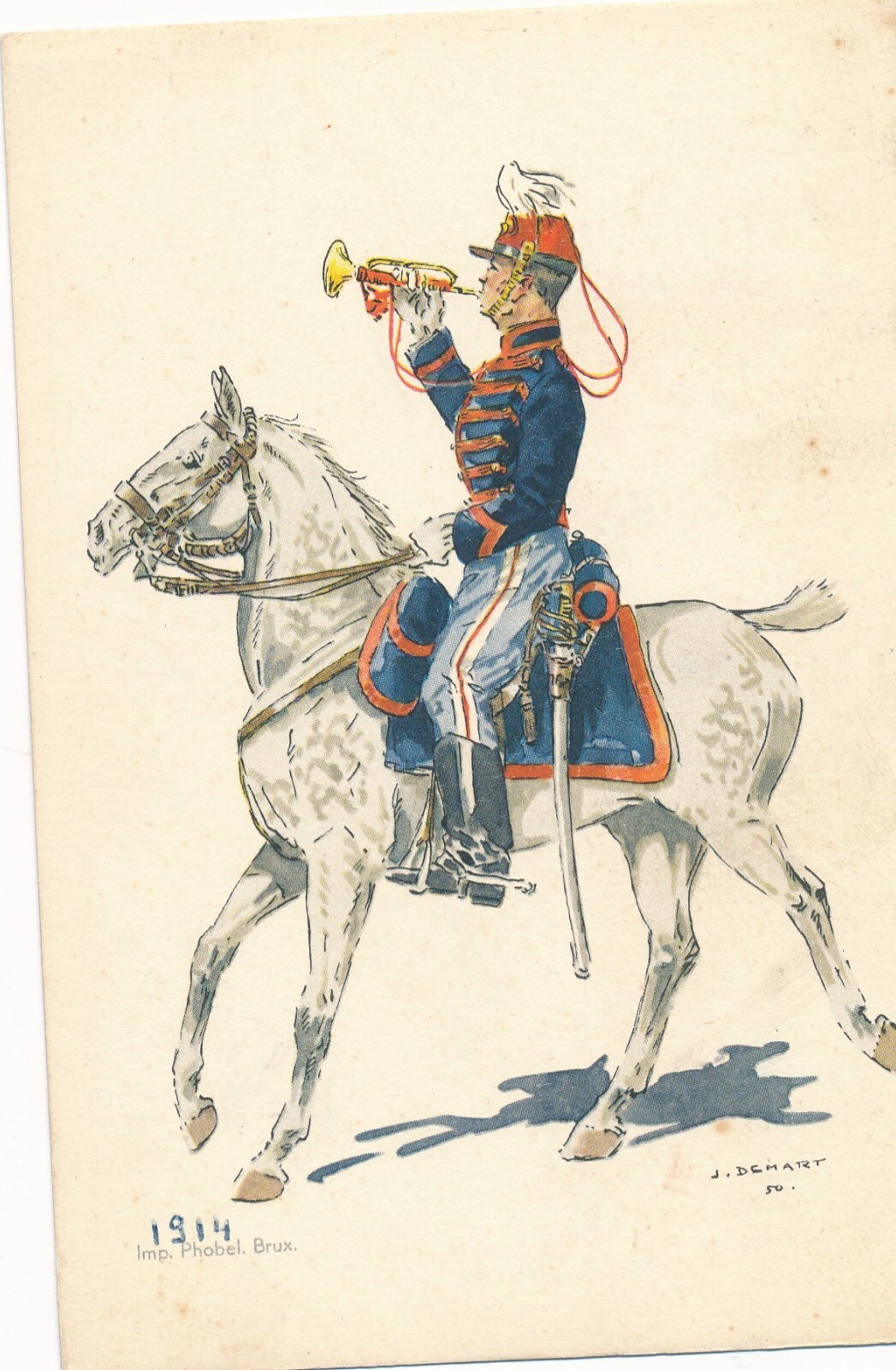 AK Uniform Belgien 1914 Chasseurs a Cheval Trompette Ansichtskarte (8756)